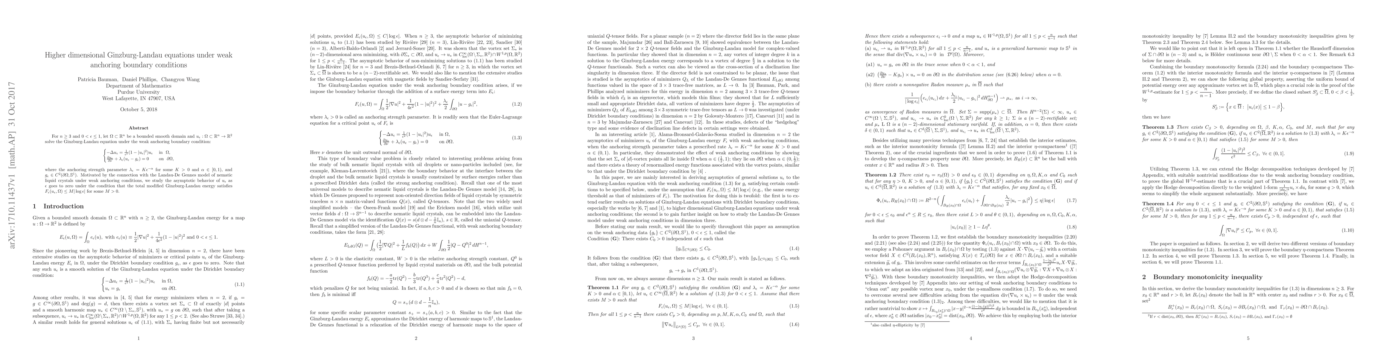 For $n\ge 3$ and $0<\epsilon\le 1$, let $\Omega\subset\mathbb R^n$ be a bounded smooth domain and $u_\epsilon:\Omega \subset\R^n\to \mathbb R^2$ solve the Ginzburg-Landau equation under the weak anchoring boundary condition: $$\begin{cases} -\Delta u_\epsilon=\frac{1}{\epsilon^2}(1-|u_\epsilon|^2)u_\epsilon &\ {\rm{in}}\ \ \Omega, \frac{\partial u_\epsilon}{\partial\nu}+\lambda_\epsilon(u_\epsilon-g_\epsilon)=0 & \ {\rm{on}}\ \ \partial\Omega, \end{cases} $$ where the anchoring strength parameter $\lambda_\epsilon=K\epsilon^{-\alpha}$ for some $K>0$ and $\alpha\in [0,1)$, and $g_\epsilon\in C^2(\partial\Omega, \mathbb S^1)$. Motivated by the connection with the Landau-De Gennes model of nematic liquid crystals under weak anchoring conditions, we study the {asymptotic behavior} of $u_\epsilon$ as $\epsilon$ goes to zero under the condition that the total modified Ginzburg-Landau energy {satisfies} $F_\epsilon(u_\epsilon,\Omega)\le M|\log\epsilon|$ for some $M>0$.