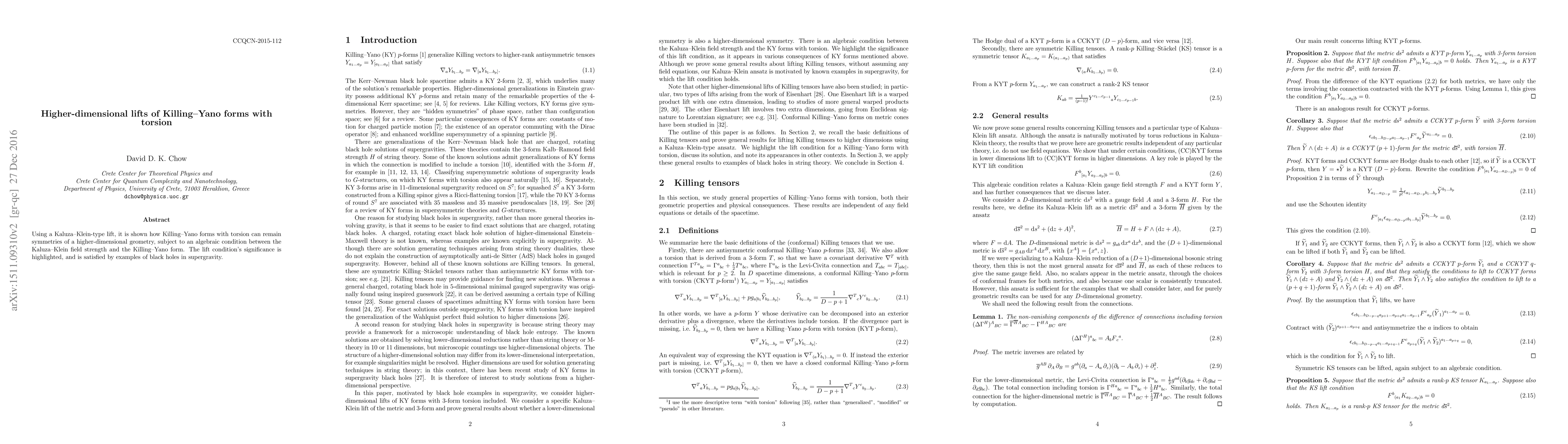 Using a Kaluza-Klein-type lift, it is shown how Killing-Yano forms with torsion can remain symmetries of a higher-dimensional geometry, subject to an algebraic condition between the Kaluza-Klein field strength and the Killing-Yano form. The lift condition's significance is highlighted, and is satisfied by examples of black holes in supergravity.