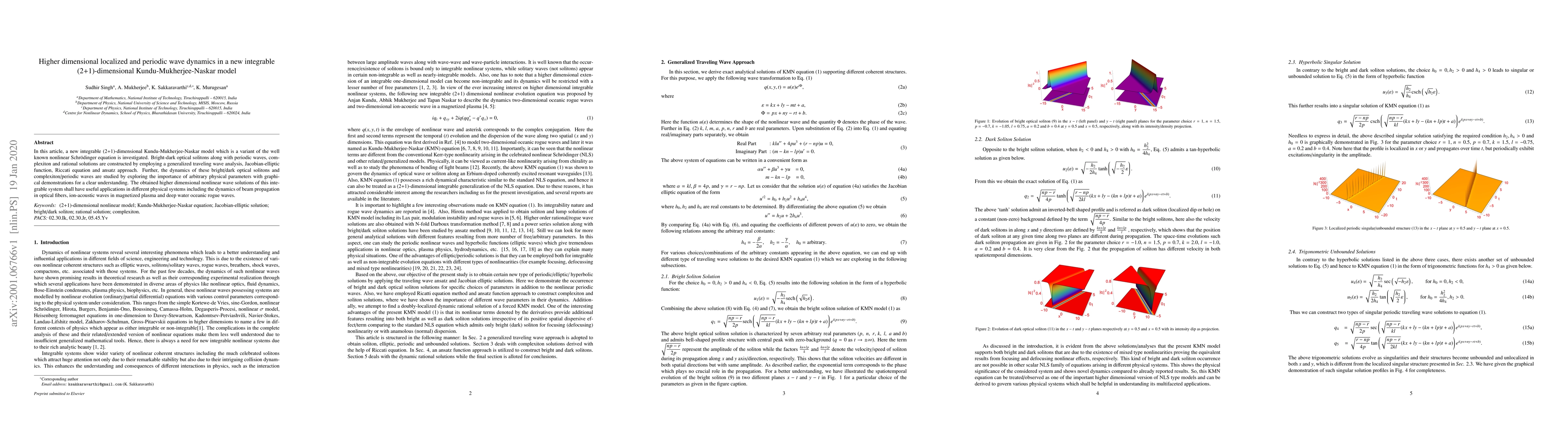 In this article, a new integrable (2+1)-dimensional Kundu-Mukherjee-Naskar model which is a variant of the well known nonlinear Schr\"odinger equation is investigated. Bright-dark optical solitons along with periodic waves, complexiton and rational solutions are constructed by employing a generalized traveling wave analysis, Jacobian-elliptic function, Riccati equation and ansatz approach. Further, the dynamics of these bright/dark optical solitons and complexiton/periodic waves are studied by exploring the importance of arbitrary physical parameters with graphical demonstrations for a clear understanding. The obtained higher dimensional nonlinear wave solutions of this integrable system shall have useful applications in different physical systems including the dynamics of beam propagation in optical fibers, ion-acoustic waves in magnetized plasma and deep water oceanic rogue waves.