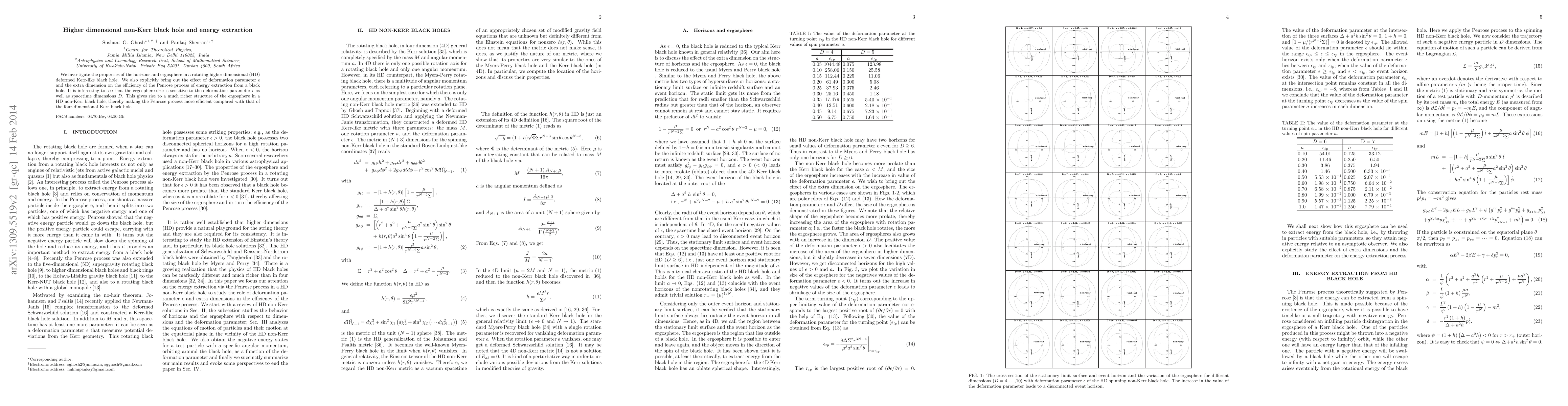 We investigate the properties of the horizons and ergosphere in a rotating higher dimensional (HD) deformed Kerr-like black hole. We also explicitly bring out the effect of deformation parameter $\epsilon$ and the extra dimension on the efficiency of the Penrose process of energy extraction from a black hole. It is interesting to see that the ergosphere size is sensitive to the deformation parameter $\epsilon$ as well as spacetime dimensions $D$. This gives rise to a much richer structure of the ergosphere in a HD non-Kerr black hole, thereby making the Penrose process more efficient compared with that of the four-dimensional Kerr black hole.