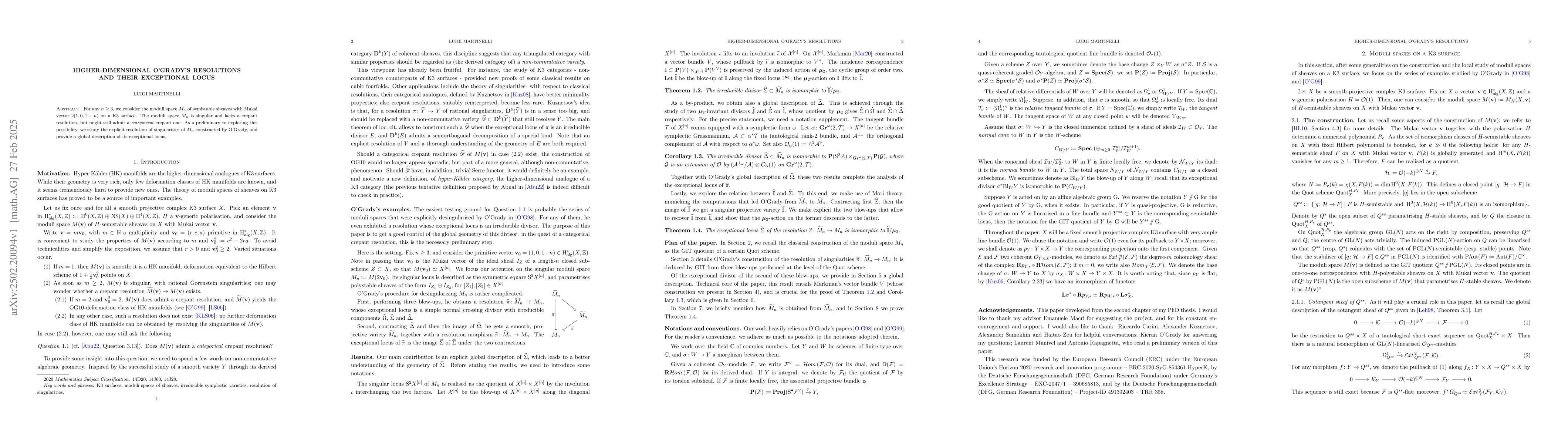 The research employs a detailed geometric analysis of higher-dimensional O'Grady's resolutions, focusing on the exceptional locus and utilizing the explicit resolution constructed by O'Grady.