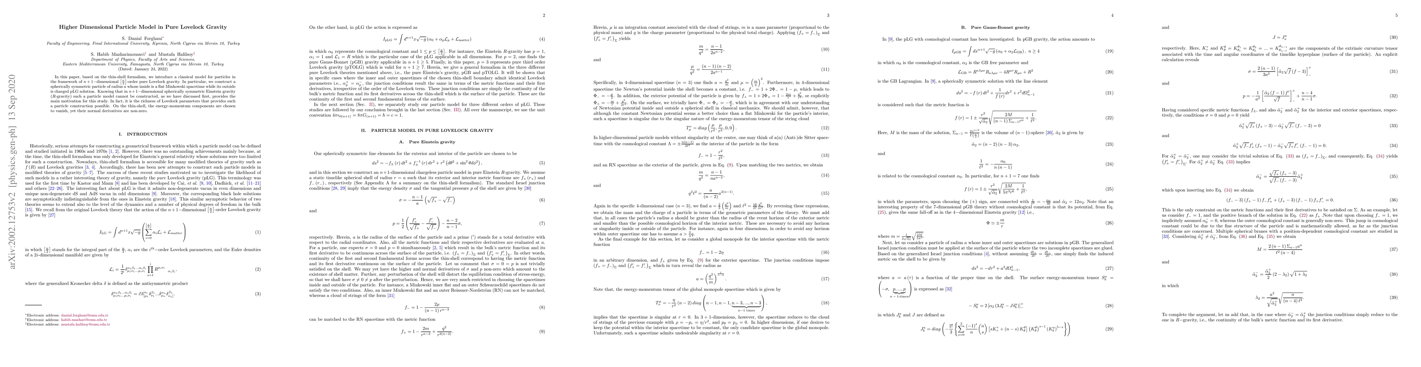 In this paper, based on the thin-shell formalism, we introduce a classical model for particles in the framework of $n+1-$dimensional $\left[\frac{n}{2}\right]$-order pure Lovelock gravity. In particular, we construct a spherically symmetric particle of radius $a$ whose inside is a flat Minkowski spacetime while its outside is charged pLG solution. Knowing that in $n+1-$dimensional spherically symmetric Einstein gravity ($R$-gravity) such a particle model cannot be constructed, as we have discussed first, provides the main motivation for this study. In fact, it is the richness of Lovelock parameters that provides such a particle construction possible. On the thin-shell, the energy-momentum components are chosen to vanish, yet their normal derivatives are non-zero.