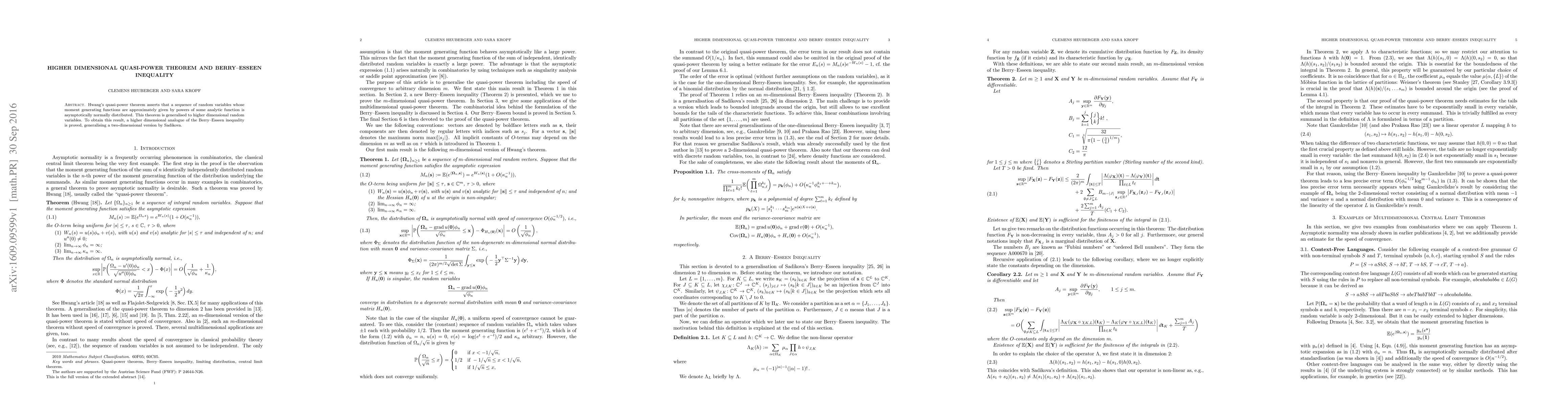 This research extends Hwang's quasi-power theorem to higher dimensions, proving a generalized Berry-Esseen inequality for multidimensional random variables, building upon Sadikova's two-dimensional version.