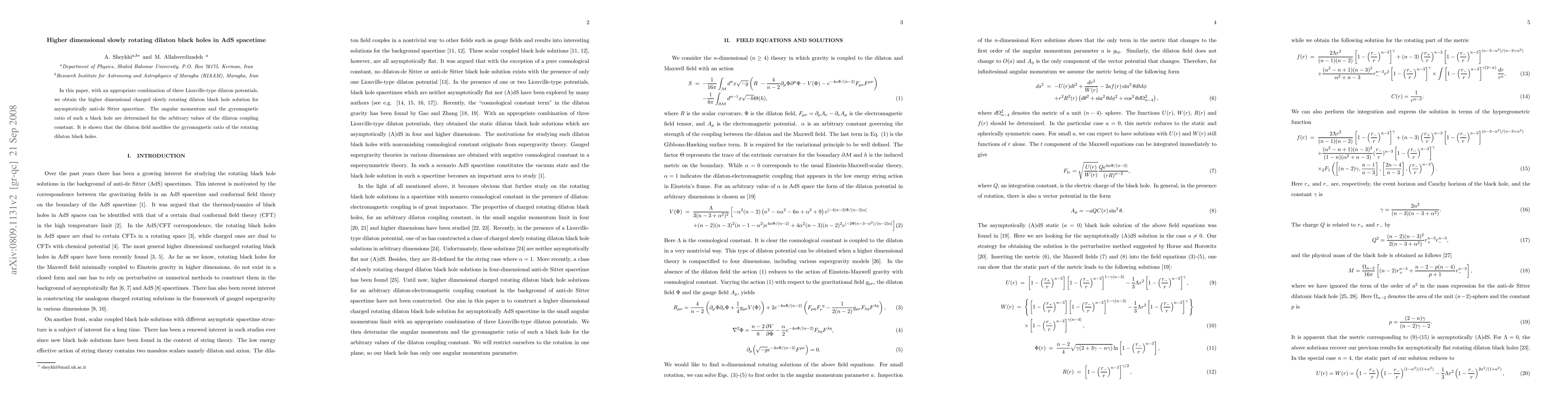 This paper presents a higher dimensional charged, slowly rotating dilaton black hole in asymptotically anti-de Sitter spacetime derived from three Liouville-type dilaton potentials. It reveals that the dilaton field alters the gyromagnetic ratio of these rotating black holes.