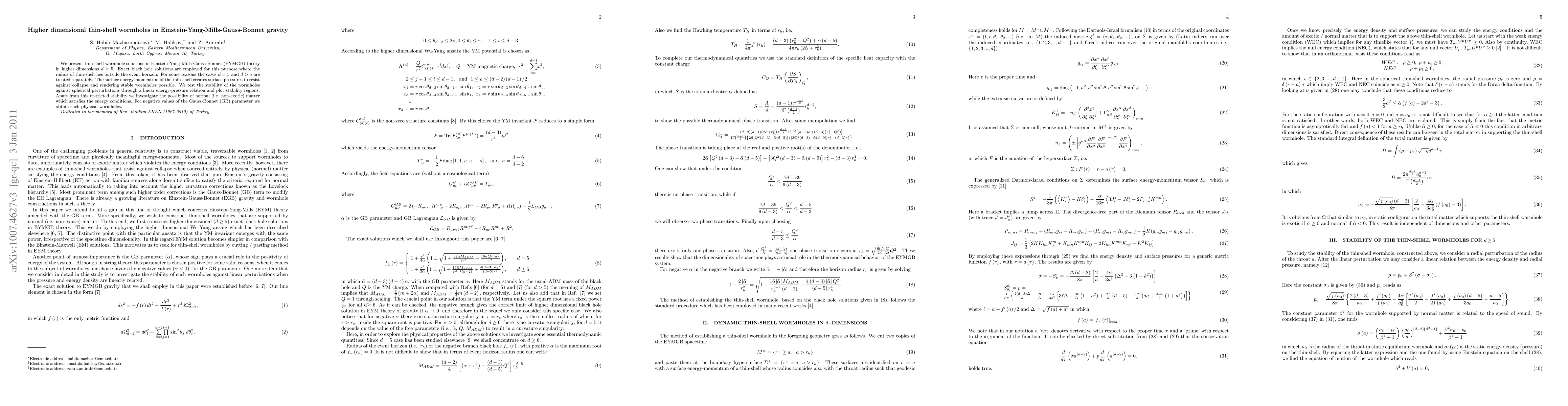 This paper explores thin-shell wormhole solutions in higher-dimensional Einstein-Yang-Mills-Gauss-Bonnet gravity, using exact black hole solutions and investigating stability through linear energy-pressure relations. It finds stable wormholes with normal matter for negative Gauss-Bonnet parameters.