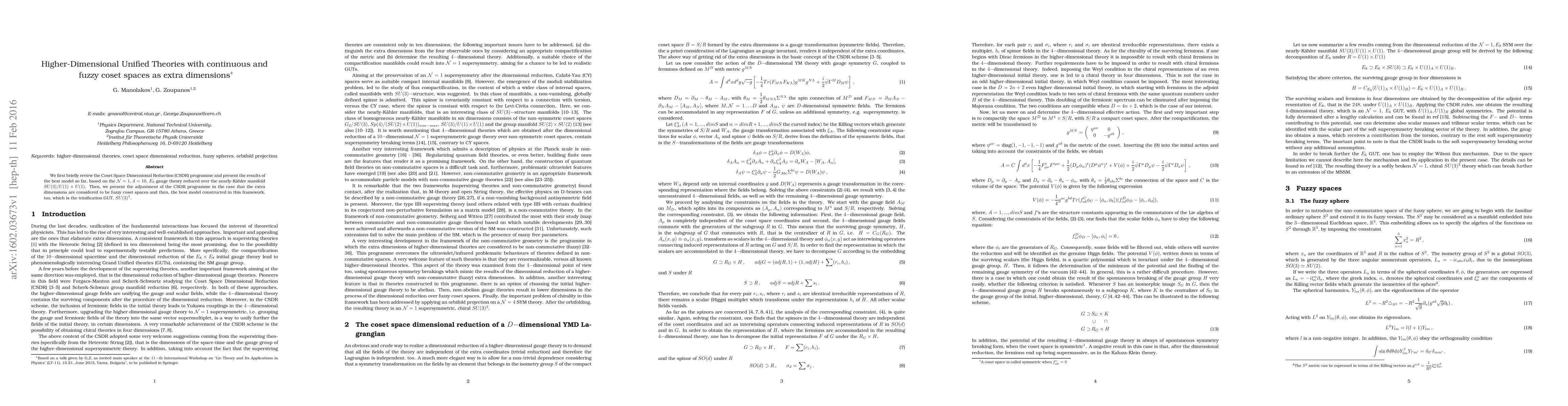 This paper reviews the Coset Space Dimensional Reduction (CSDR) programme and presents the best model based on $\mathcal{N} = 1$, $d = 10$, $E_8$ gauge theory reduced over $SU(3)/U(1)\times U(1)$. It then adjusts the CSDR programme for fuzzy coset spaces, constructing the trinification GUT, $SU(3)^3$.