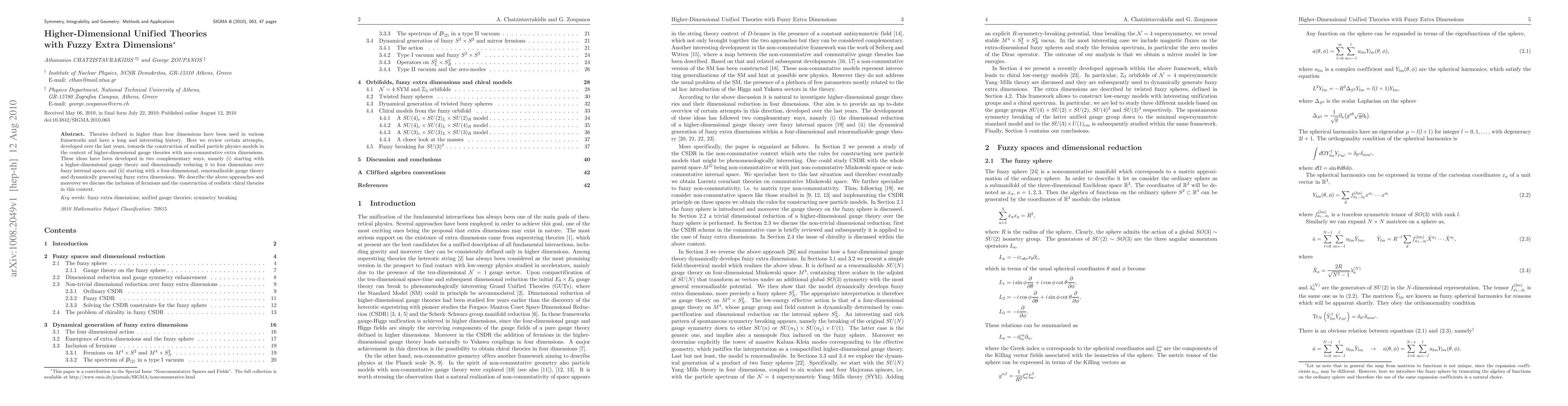 This paper reviews recent efforts to construct unified particle physics models using higher-dimensional gauge theories with non-commutative extra dimensions, focusing on two approaches: dimensional reduction over fuzzy spaces and dynamic generation of fuzzy extra dimensions. It also discusses the inclusion of fermions to build realistic chiral theories.