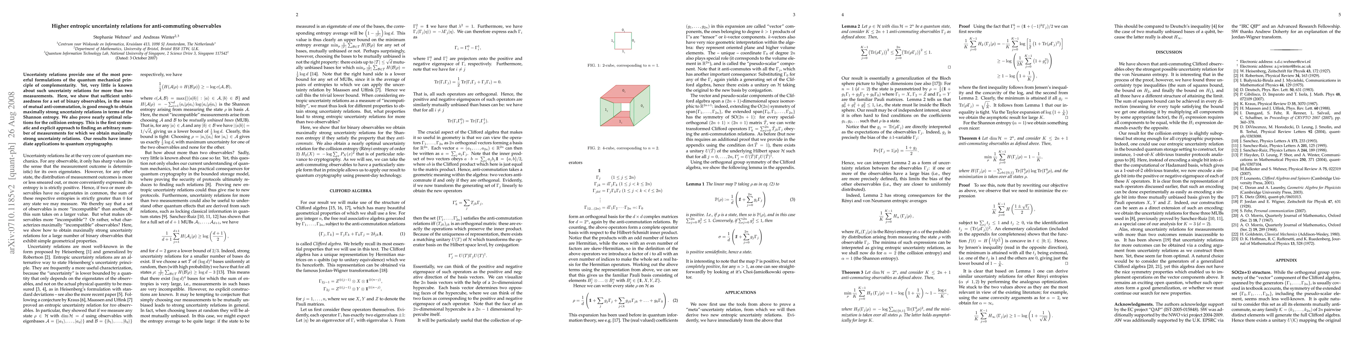 Uncertainty relations lie at the very core of quantum mechanics, and form the cornerstone of essentially all quantum cryptographic applications. In particular, they play an important role in cryptographic protocols in the bounded-quantum-storage model, where proving the security of all existing protocols ultimately reduces to bounding such relations. Yet, very little is known about such uncertainty relations for more than two measurements. Here, we prove optimal entropic uncertainty relations for anti-commuting binary observables for the Shannon entropy, and nearly optimal relations for the collision entropy. Our results have immediate applications to quantum cryptography.