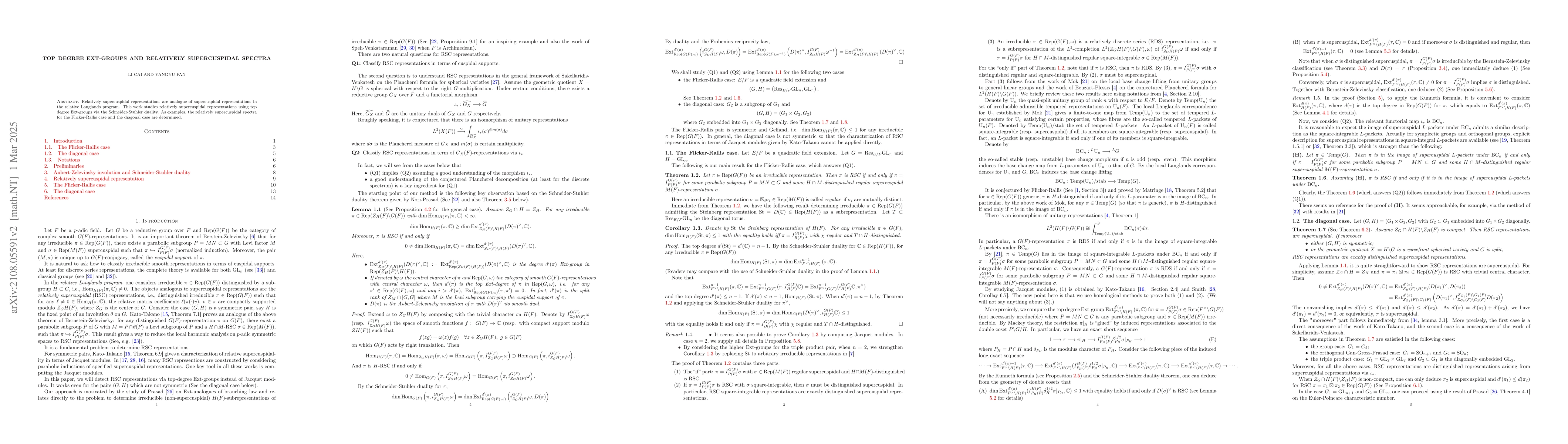 This paper studies relatively supercuspidal representations using top degree Ext-groups via Schneider-Stuhler duality, determining spectra for the Galois case and triple product case.