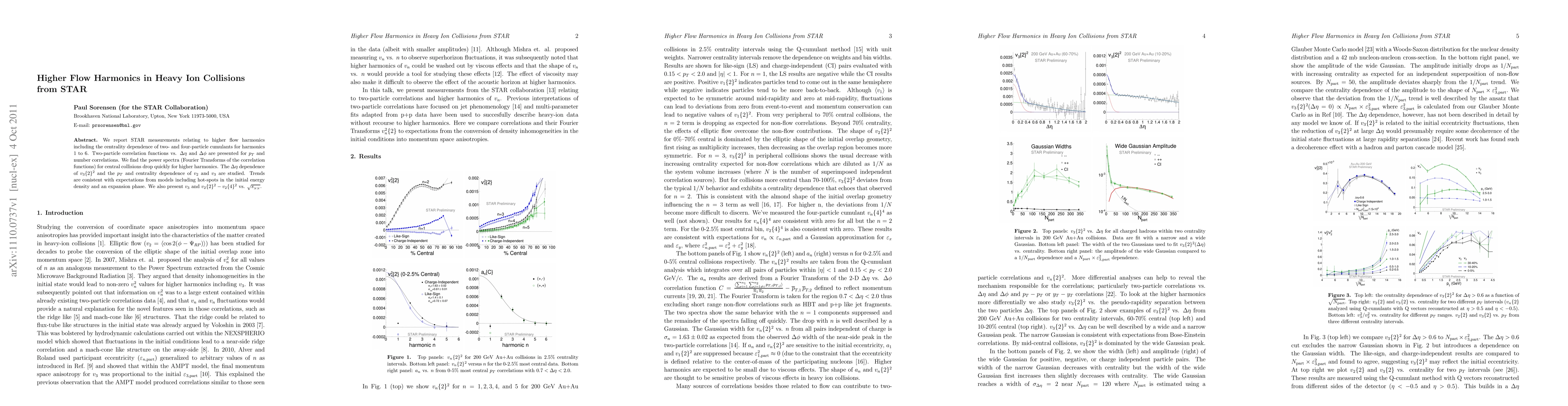 We report STAR measurements relating to higher flow harmonics including the centrality dependence of two- and four-particle cumulants for harmonics 1 to 6. Two-particle correlation functions vs. \Delta\eta and \Delta\phi are presented for pT and number correlations. We find the power spectra (Fourier Transforms of the correlation functions) for central collisions drop quickly for higher harmonics. The \Delta\eta dependence of v3{2}2 and the pT and centrality dependence of v2 and v3 are studied. Trends are conistent with expectations from models including hot-spots in the initial energy density and an expansion phase. We also present v3 and v2{2}2 - v2{4}2 vs. \surdsNN .