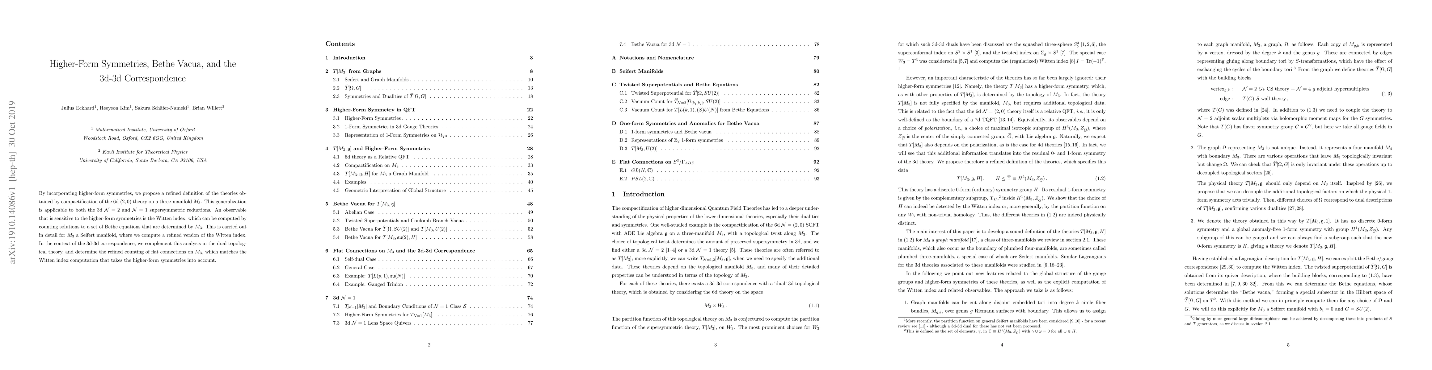 By incorporating higher-form symmetries, we propose a refined definition of the theories obtained by compactification of the 6d $(2,0)$ theory on a three-manifold $M_3$. This generalization is applicable to both the 3d $\mathcal{N}=2$ and $\mathcal{N}=1$ supersymmetric reductions. An observable that is sensitive to the higher-form symmetries is the Witten index, which can be computed by counting solutions to a set of Bethe equations that are determined by $M_3$. This is carried out in detail for $M_3$ a Seifert manifold, where we compute a refined version of the Witten index. In the context of the 3d-3d correspondence, we complement this analysis in the dual topological theory, and determine the refined counting of flat connections on $M_3$, which matches the Witten index computation that takes the higher-form symmetries into account.
