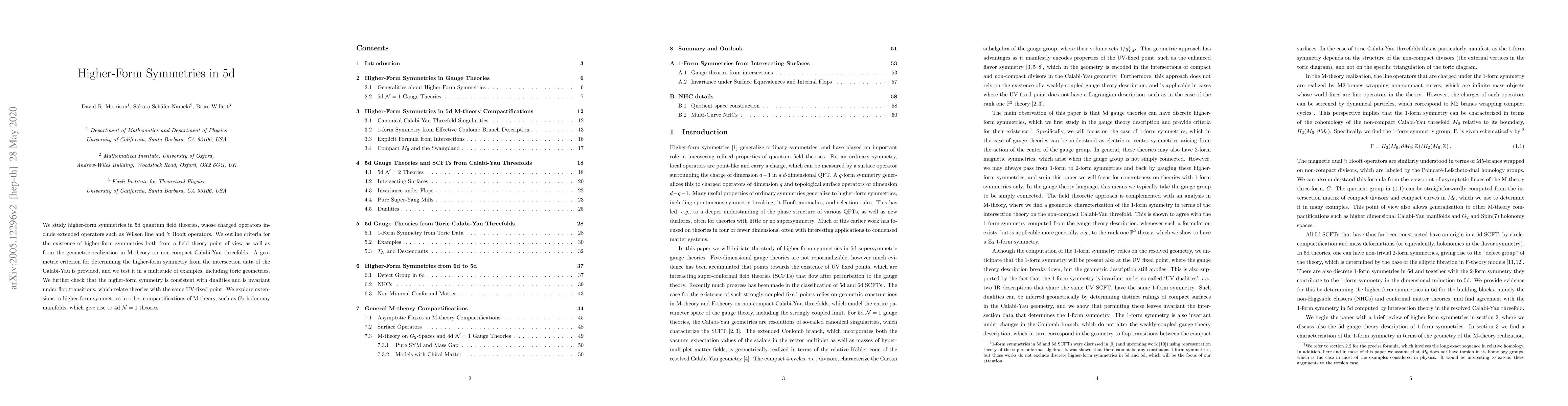 The paper introduces a geometric criterion for determining higher-form symmetries in 5d theories from Calabi-Yau threefolds, extending the understanding of symmetries in quantum field theory and their geometric origins.