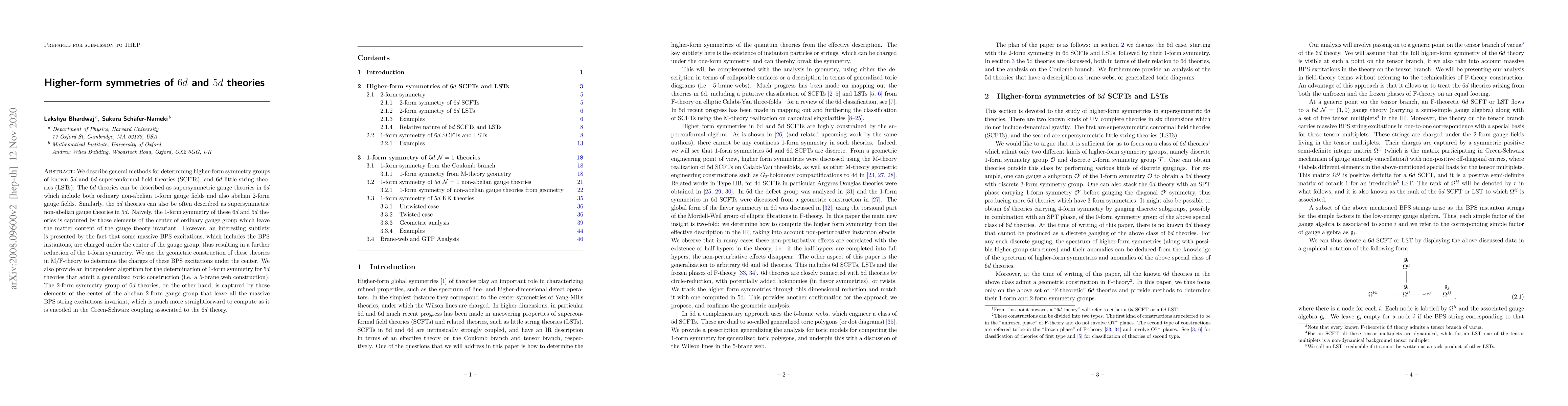 This paper presents methods to identify higher-form symmetry groups in 5d and 6d superconformal field theories and little string theories. It explores how 1-form symmetries are reduced by massive BPS excitations and provides algorithms to determine these symmetries, particularly focusing on the 2-form symmetries in 6d theories.