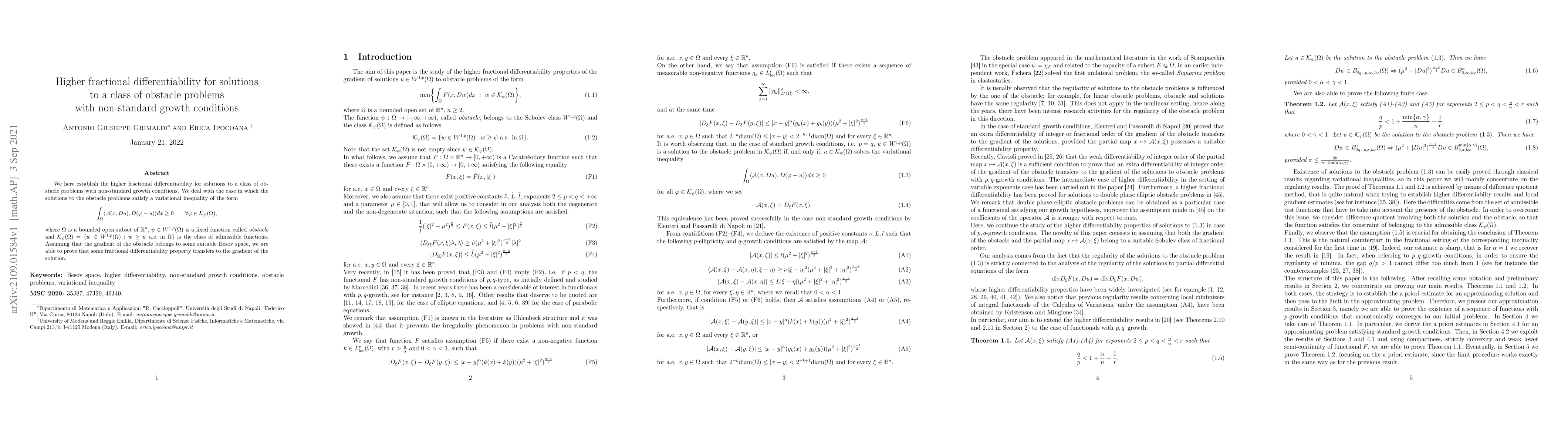 This paper establishes higher fractional differentiability for solutions to obstacle problems with non-standard growth conditions, proving that the gradient of the solution inherits fractional differentiability properties when the obstacle's gradient belongs to a specific Besov space.