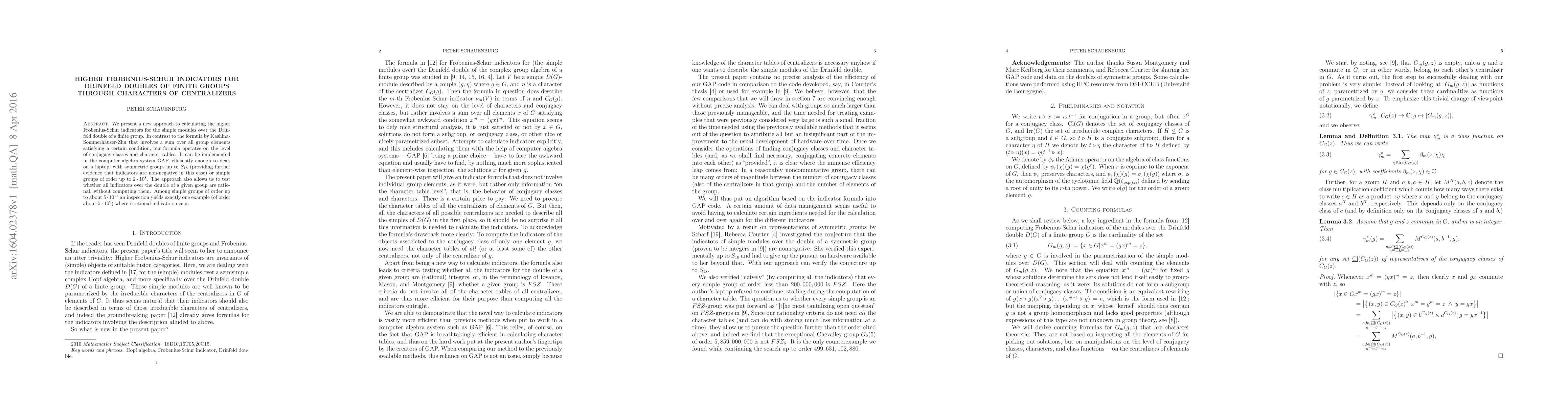 This paper introduces a novel method for computing higher Frobenius-Schur indicators for simple modules over Drinfeld doubles of finite groups, using conjugacy classes and character tables instead of group elements, and shows its effectiveness in GAP for large symmetric and simple groups. It also reveals that irrational indicators are rare, found in only one simple group of order around $5 \cdot 10^9$ among those up to $5 \cdot 10^{11}$.