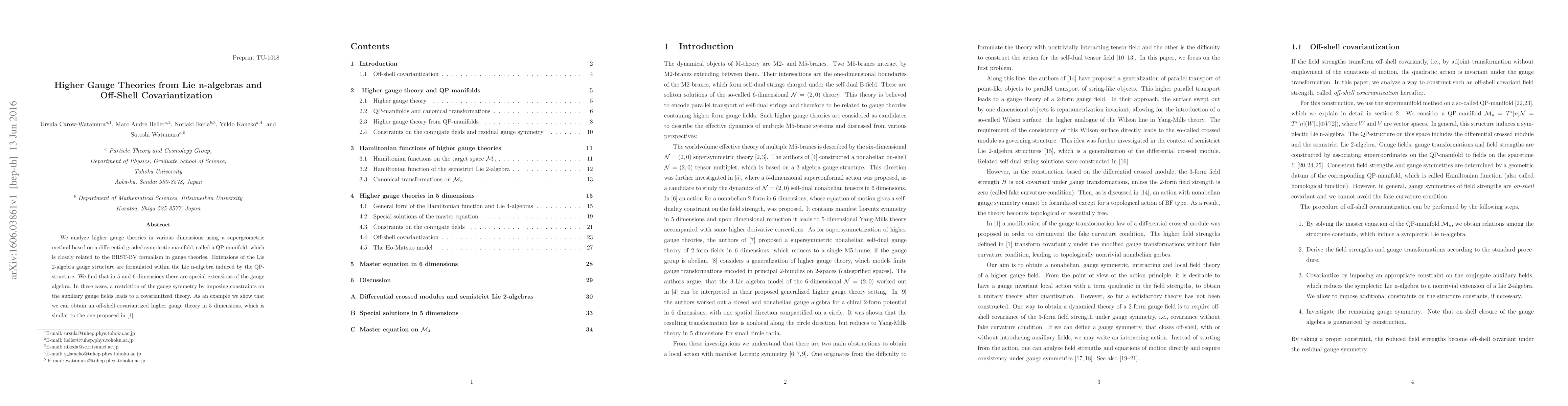 This paper explores higher gauge theories in dimensions 5 and 6 through a supergeometric method using QP-manifolds and Lie n-algebras. It discovers special gauge algebra extensions in these dimensions, leading to covariantized theories via restrictions on auxiliary gauge fields.