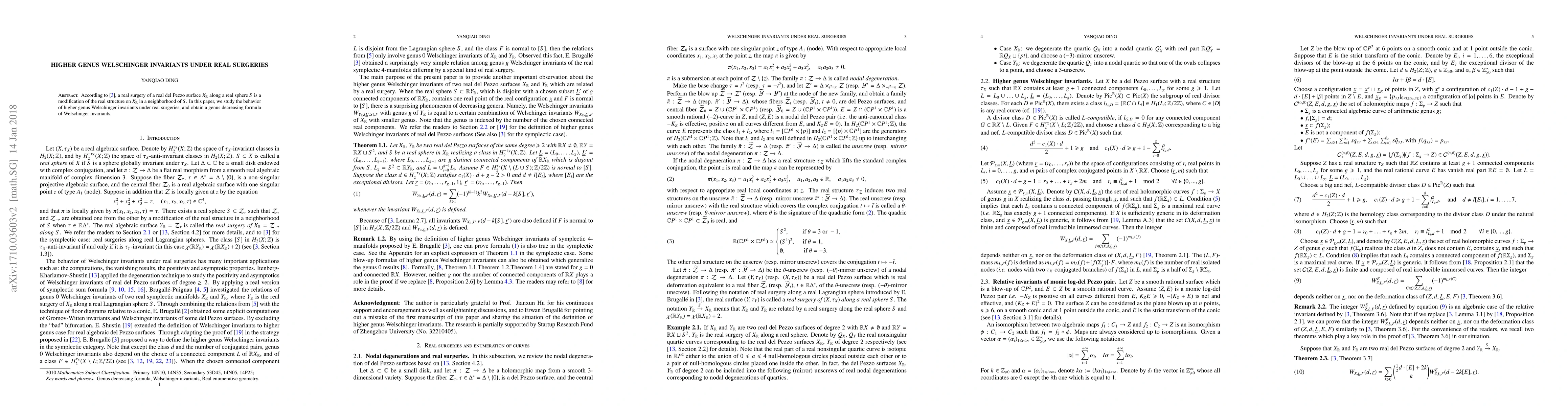 This paper investigates the effect of real surgeries on real del Pezzo surfaces on higher genus Welschinger invariants, ultimately deriving a genus decreasing formula for these invariants.
