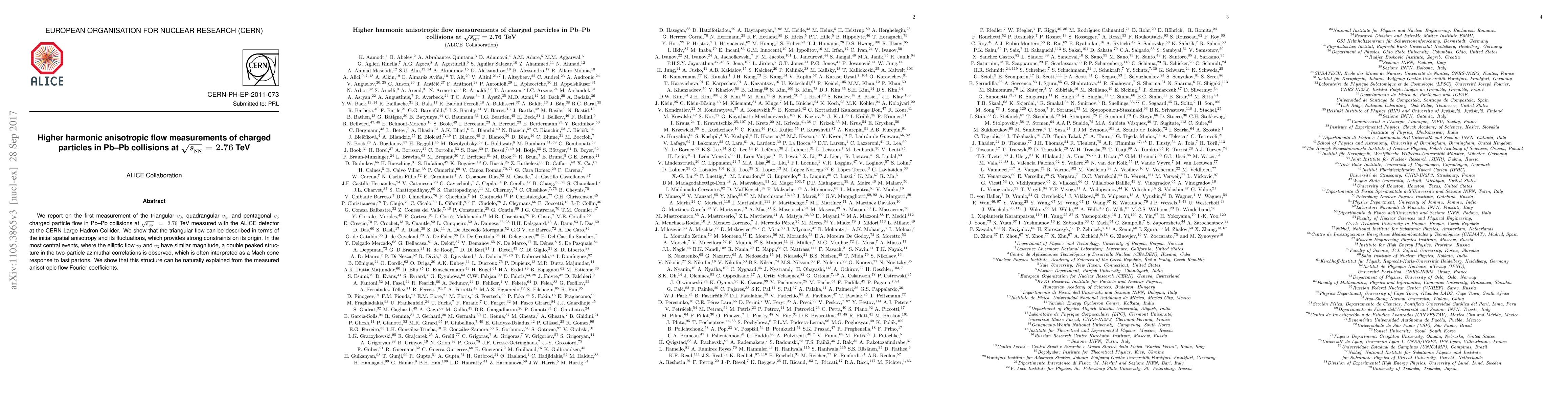 This paper reports the first measurement of higher harmonic anisotropic flow coefficients $v_3$, $v_4$, and $v_5$ in Pb-Pb collisions at 2.76 TeV using the ALICE detector. The findings indicate that triangular flow $v_3$ can be described by initial spatial anisotropy and its fluctuations, providing insights into its origin.