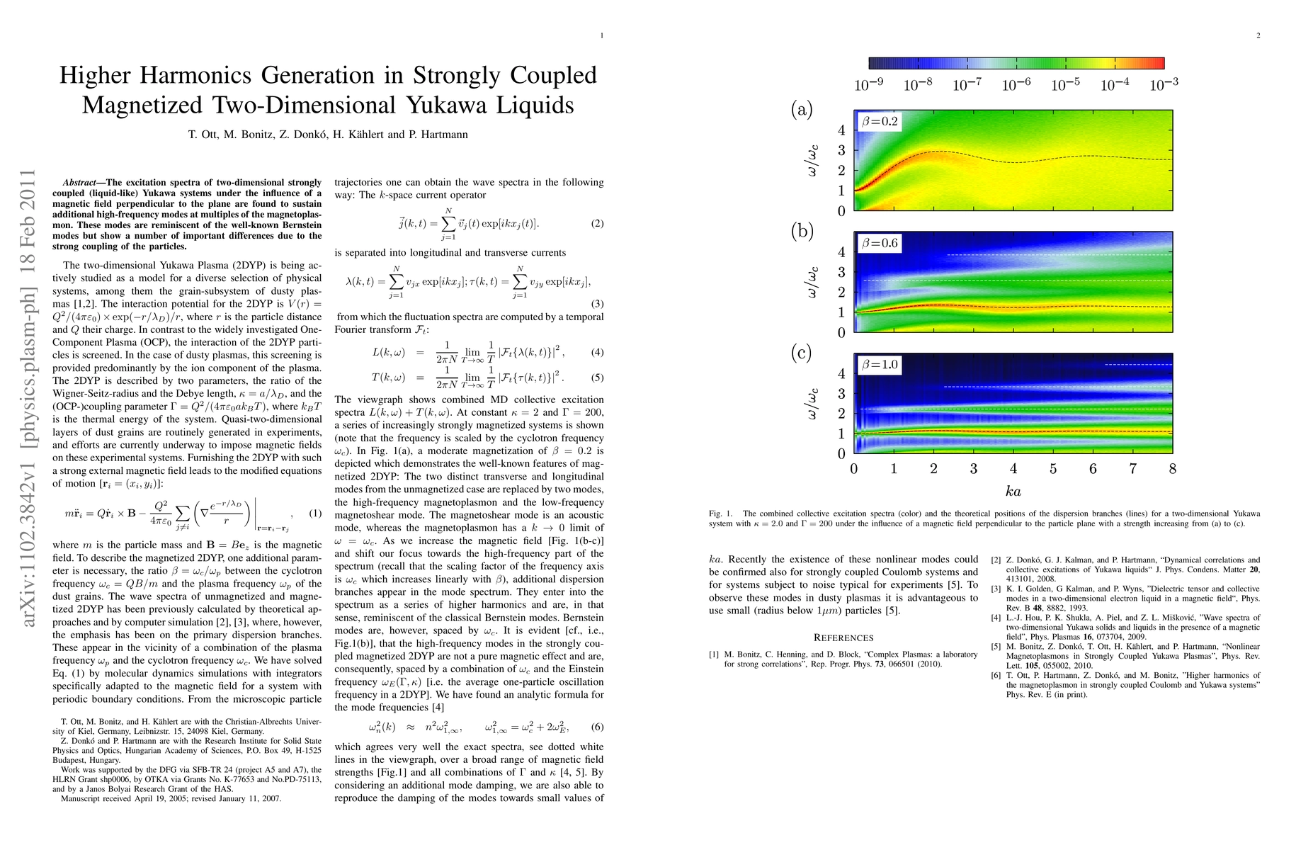 The excitation spectra of two-dimensional strongly coupled (liquid-like) Yukawa systems under the influence of a magnetic field perpendicular to the plane are found to sustain additional high-frequency modes at multiples of the magnetoplasmon. These modes are reminiscent of the well-known Bernstein modes but show a number of important differences due to the strong coupling of the particles.