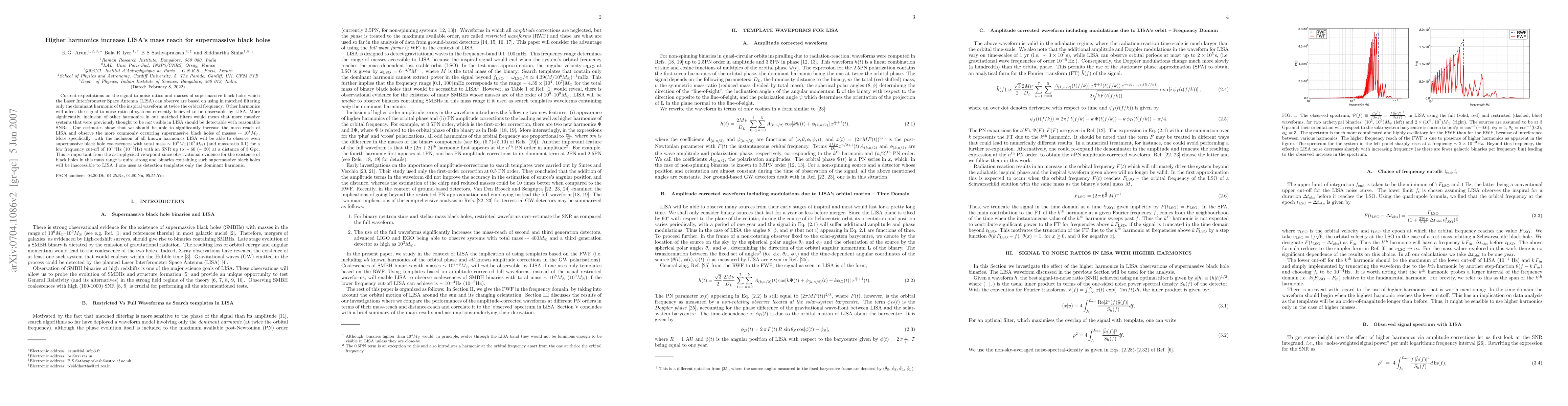 Current expectations on the signal to noise ratios and masses of supermassive black holes which the Laser Interferometer Space Antenna (LISA) can observe are based on using in matched filtering only the dominant harmonic of the inspiral waveform at twice the orbital frequency. Other harmonics will affect the signal-to-noise ratio of systems currently believed to be observable by LISA. More significantly, inclusion of other harmonics in our matched filters would mean that more massive systems that were previously thought to be {\it not} visible in LISA should be detectable with reasonable SNRs. Our estimates show that we should be able to significantly increase the mass reach of LISA and observe the more commonly occurring supermassive black holes of masses $\sim 10^8M_\odot.$ More specifically, with the inclusion of all known harmonics LISA will be able to observe even supermassive black hole coalescences with total mass $\sim 10^8 M_\odot (10^9M_\odot)$ (and mass-ratio 0.1) for a low frequency cut-off of $10^{-4}{\rm Hz}$ $(10^{-5}{\rm Hz})$ with an SNR up to $\sim 60$ $(\sim 30)$ at a distance of 3 Gpc. This is important from the astrophysical viewpoint since observational evidence for the existence of black holes in this mass range is quite strong and binaries containing such supermassive black holes will be inaccessible to LISA if one uses as detection templates only the dominant harmonic.