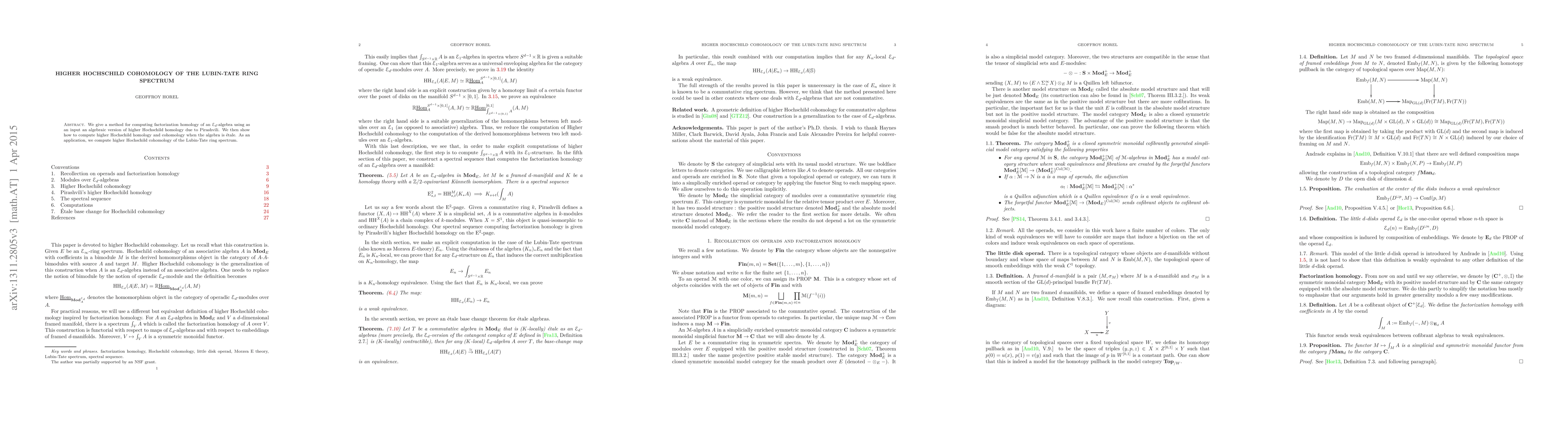 This paper develops a method to compute factorization homology of $\oper{E}_n$-algebras using algebraic higher Hochschild homology, and applies this technique to determine the higher Hochschild cohomology of the Lubin-Tate ring spectrum.