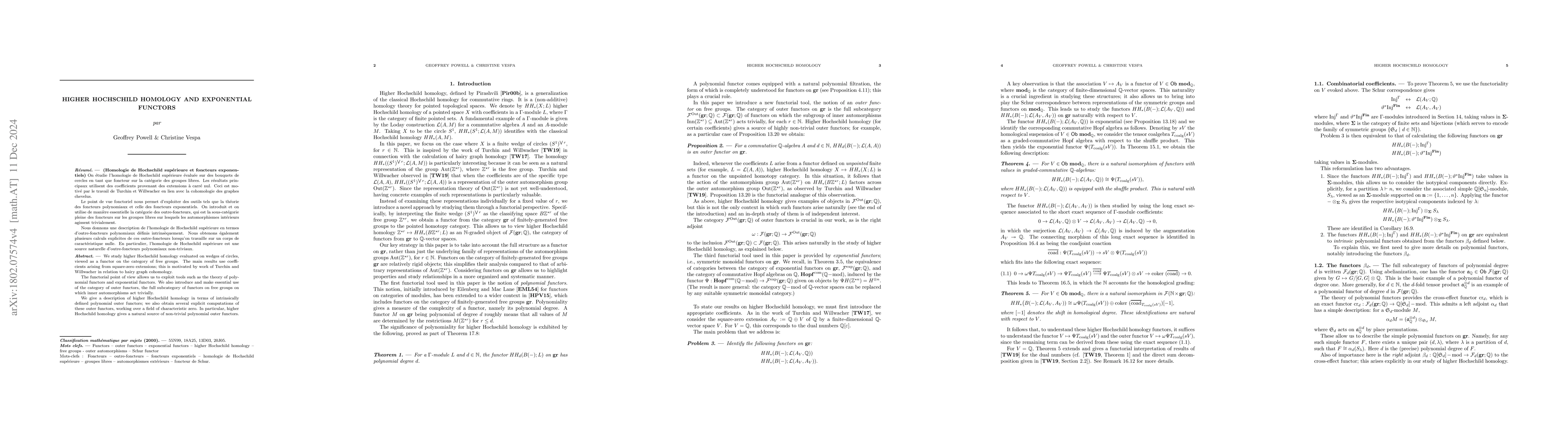 We study higher Hochschild homology evaluated on wedges of circles, viewed as a functor on the category of free groups. The principal results use coefficients arising from square-zero extensions; this is motivated in part by work of Turchin and Willwacher in relation to hairy graph cohomology. Working over a field of characteristic zero, achieve effective calculations of higher Hochschild homology, generalizing initial results of Turchin and Willwacher. This exploits exponential functors, which arise both in calculating higher Hochschild homology and in relation to polynomial functors on free groups. It is a crucial observation that these are related. For the main cases of interest, the action of automorphisms of free groups on Hochschild homology factors across outer automorphisms. As the appropriate underlying framework, we introduce and make essential use of the category of outer functors, the full subcategory of functors on free groups on which inner automorphisms act trivially.