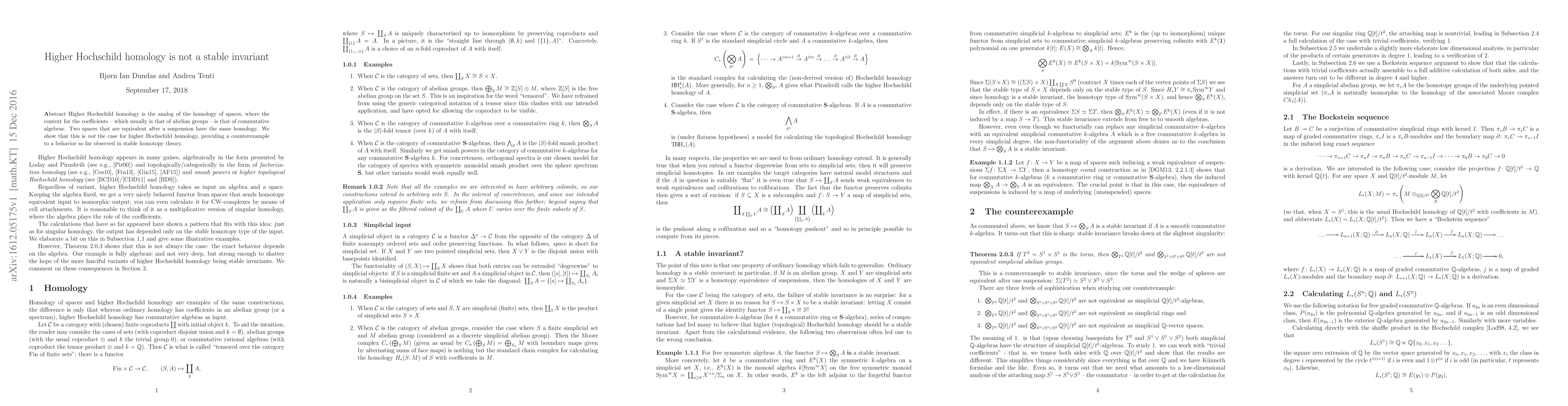 Higher Hochschild homology is the analog of the homology of spaces, where the context for the coefficients -- which usually is that of abelian groups -- is that of commutative algebras. Two spaces that are equivalent after a suspension have the same homology. We show that this is not the case for higher Hochschild homology, providing a counterexample to a behavior so far observed in stable homotopy theory.