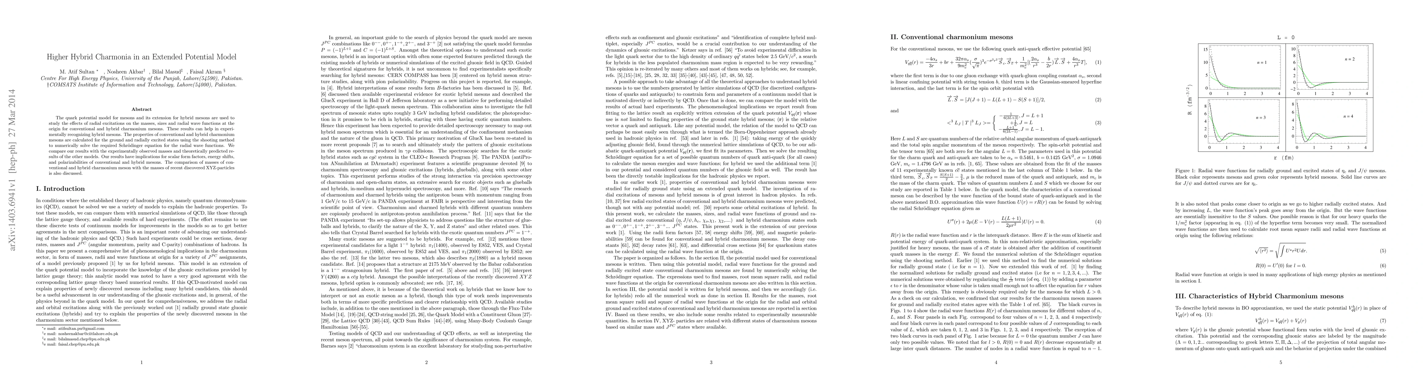This paper uses a quark potential model to study hybrid charmonium mesons, predicting their masses, sizes, and wave functions, which can help experimentally identify them and compare with other models.