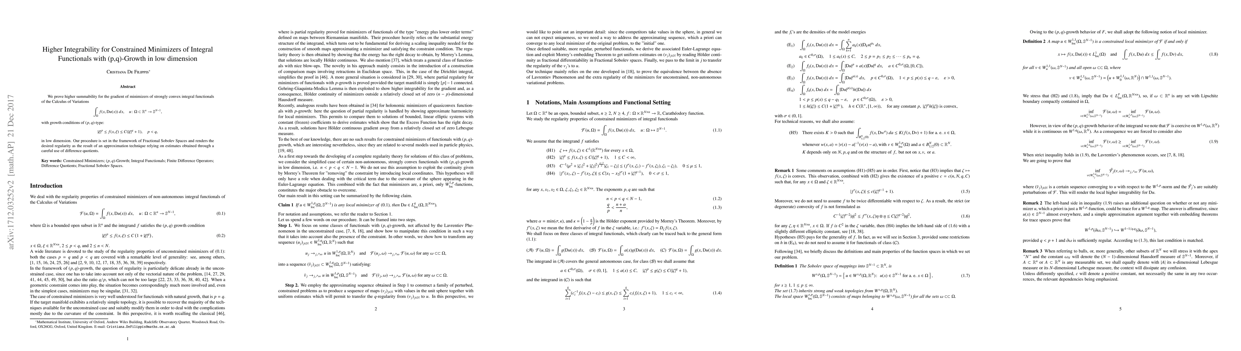 This paper proves higher integrability for the gradient of minimizers of strongly convex integral functionals with (p,q)-growth conditions in low dimensions, utilizing Fractional Sobolev Spaces and an approximation technique based on difference quotients.