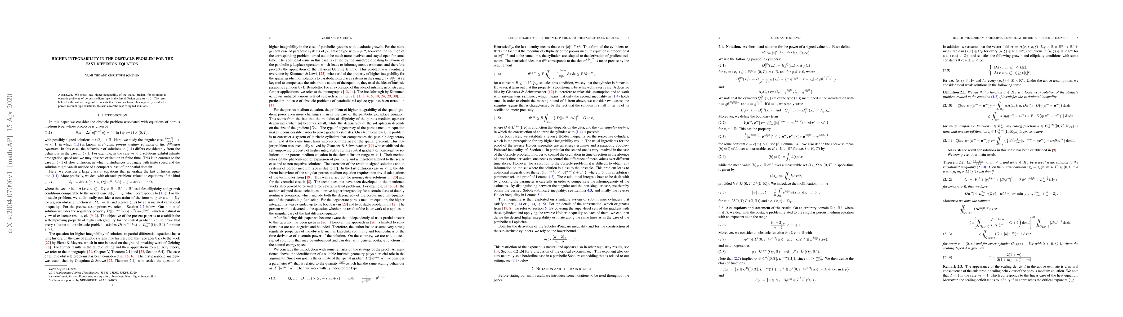 Summary: This paper demonstrates local higher integrability of the spatial gradient for solutions to the obstacle problem in fast diffusion equations with $m<1$, extending results to the natural range of exponents and including signed solutions.