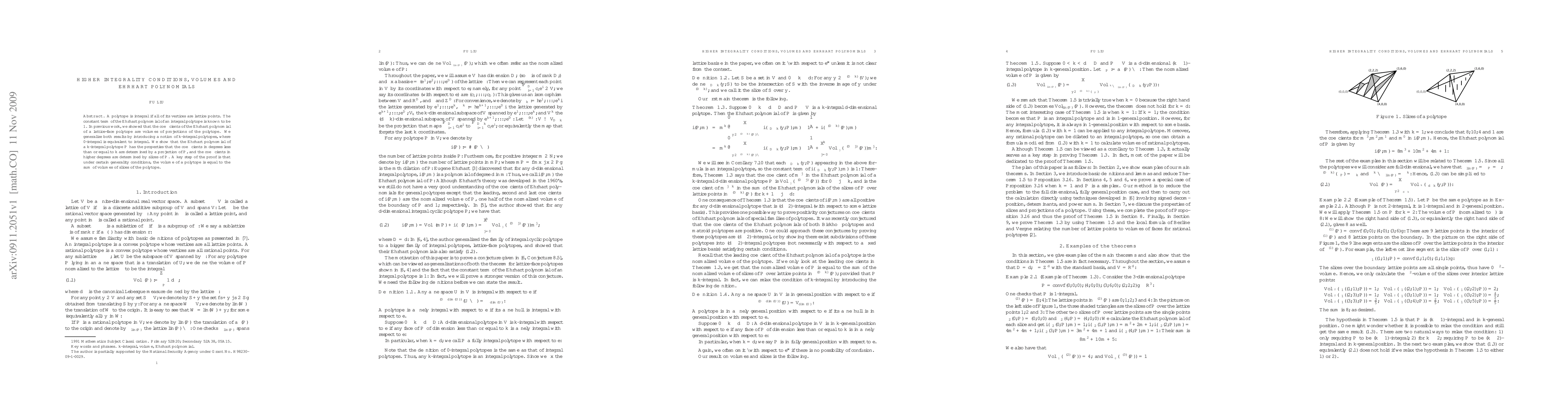 This paper introduces $k$-integral polytopes, extending the concept of integral polytopes, and demonstrates that the Ehrhart polynomial's coefficients for these polytopes are determined by projections and slices, with the volume of a polytope being the sum of its slice volumes under certain conditions.