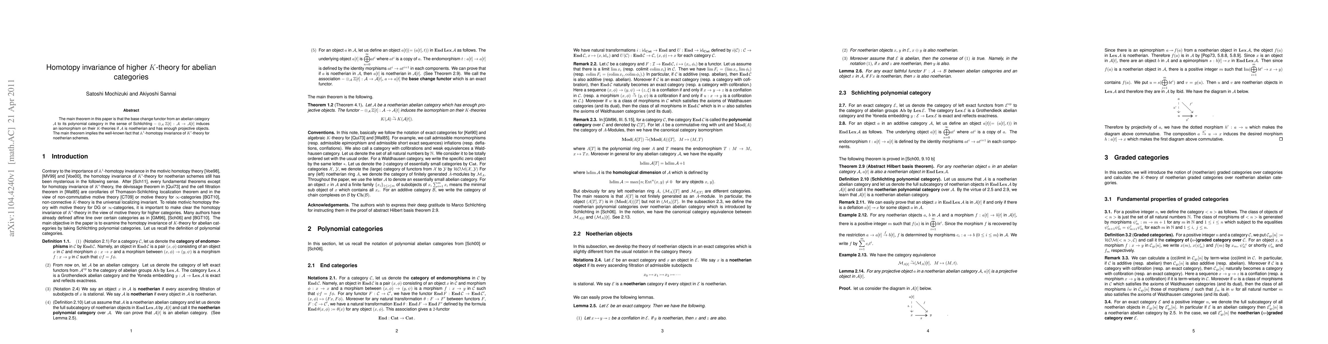 This paper proves that the base change functor from an abelian category $\cA$ to its polynomial category induces an isomorphism on their $K$-theories when $\cA$ is noetherian and has enough projective objects, implying $\mathbb{A}^1$-homotopy invariance of $K'$-theory for noetherian schemes.