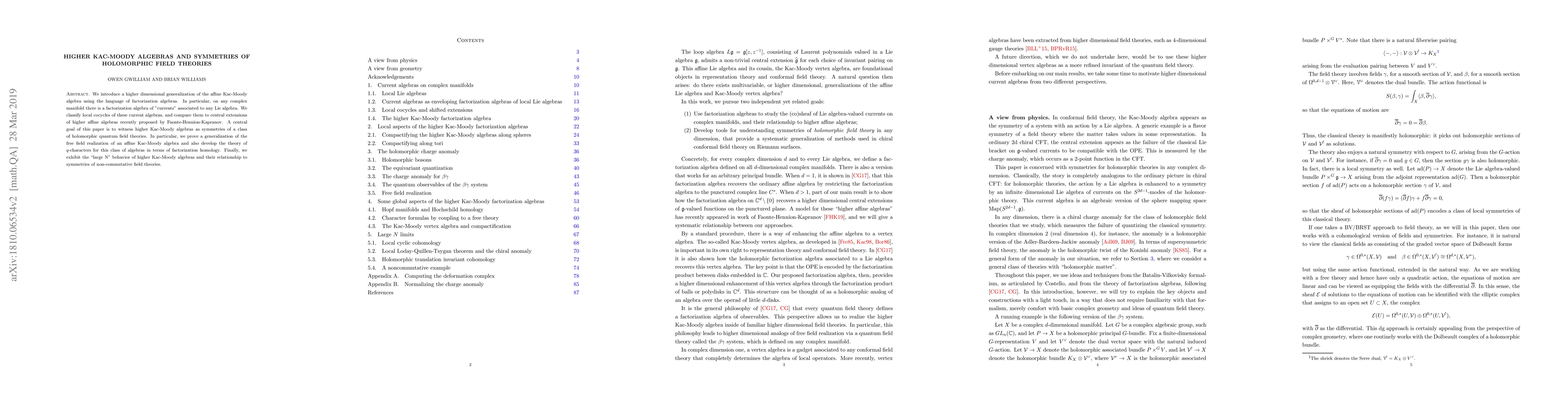This paper generalizes affine Kac-Moody algebras to higher dimensions using factorization algebras, classifying their local cocycles and linking them to central extensions. It demonstrates how these higher algebras emerge as symmetries in holomorphic quantum field theories and develops a theory of q-characters, while also exploring their behavior in large N limits and their relation to non-commutative field theories.