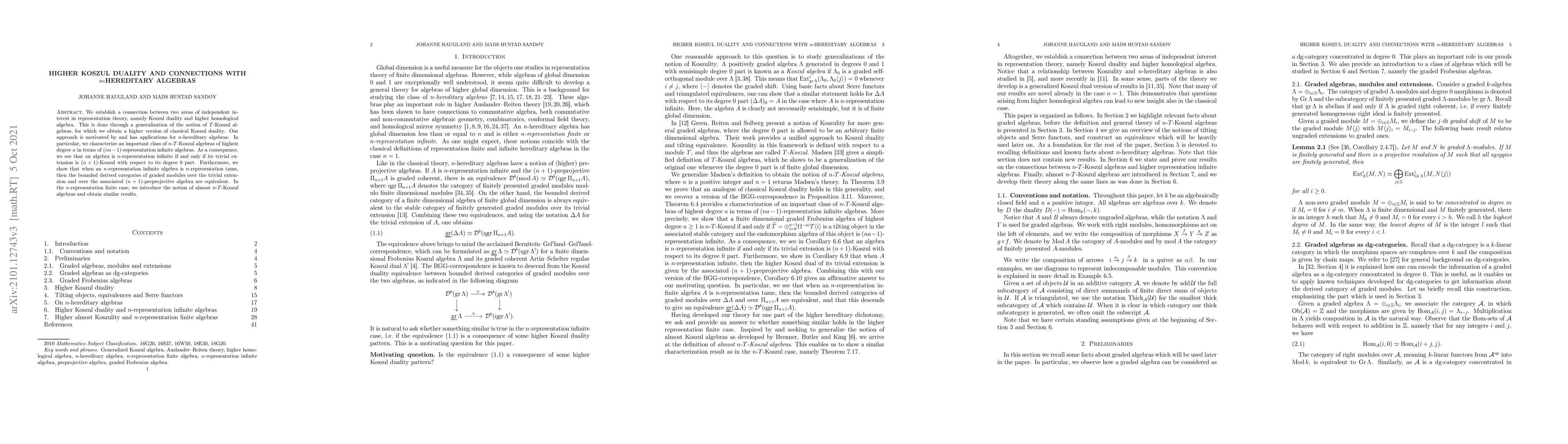 We establish a connection between two areas of independent interest in representation theory, namely Koszul duality and higher homological algebra. This is done through a generalization of the notion of $T$-Koszul algebras, for which we obtain a higher version of classical Koszul duality. Our approach is motivated by and has applications for $n$-hereditary algebras. In particular, we characterize an important class of $n$-$T$-Koszul algebras of highest degree $a$ in terms of $(na-1)$-representation infinite algebras. As a consequence, we see that an algebra is $n$-representation infinite if and only if its trivial extension is $(n+1)$-Koszul with respect to its degree $0$ part. Furthermore, we show that when an $n$-representation infinite algebra is $n$-representation tame, then the bounded derived categories of graded modules over the trivial extension and over the associated $(n+1)$-preprojective algebra are equivalent. In the $n$-representation finite case, we introduce the notion of almost $n$-$T$-Koszul algebras and obtain similar results.