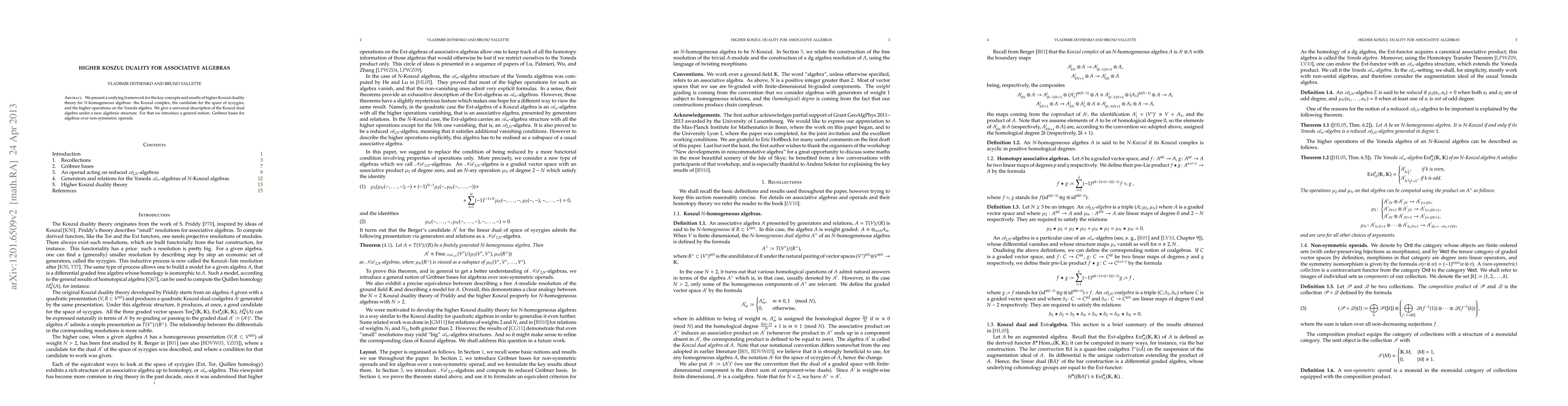 Summary: The paper establishes a framework for higher Koszul duality in N-homogeneous algebras, introducing a new algebraic structure to universally describe the Koszul dual algebra and defining Gr\"obner bases for algebras over non-symmetric operads.