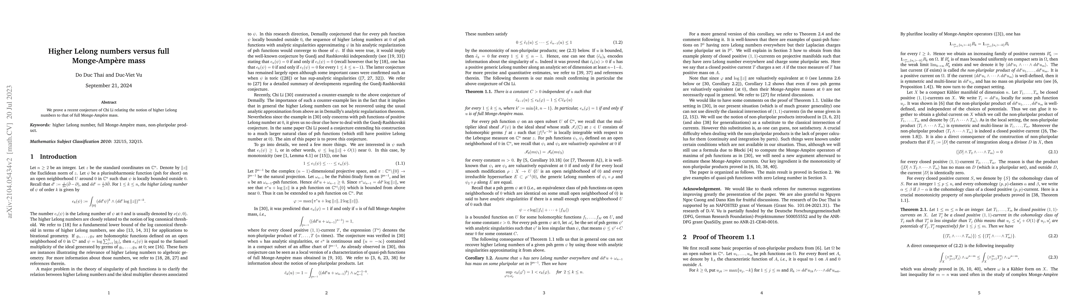 Summary: This paper proves a conjecture by Chi Li that connects higher Lelong numbers, which measure singularities in complex geometry, to full Monge-Ampère mass, a concept in potential theory. This establishes a significant link between two important mathematical notions.