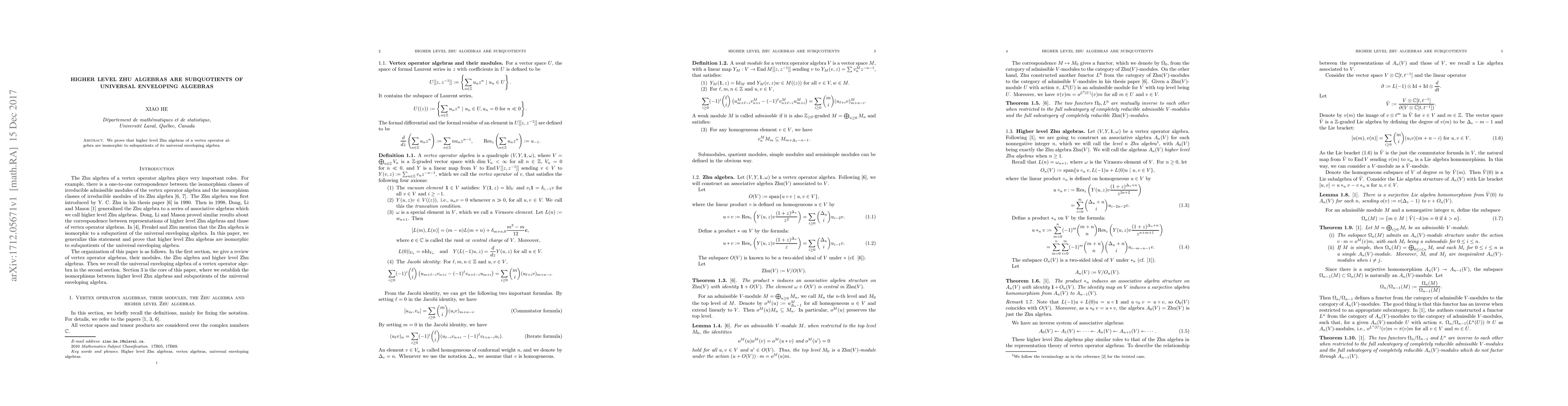 Summary: The paper demonstrates that higher level Zhu algebras of a vertex operator algebra are isomorphic to subquotients within its universal enveloping algebra, establishing a significant connection between these algebraic structures.