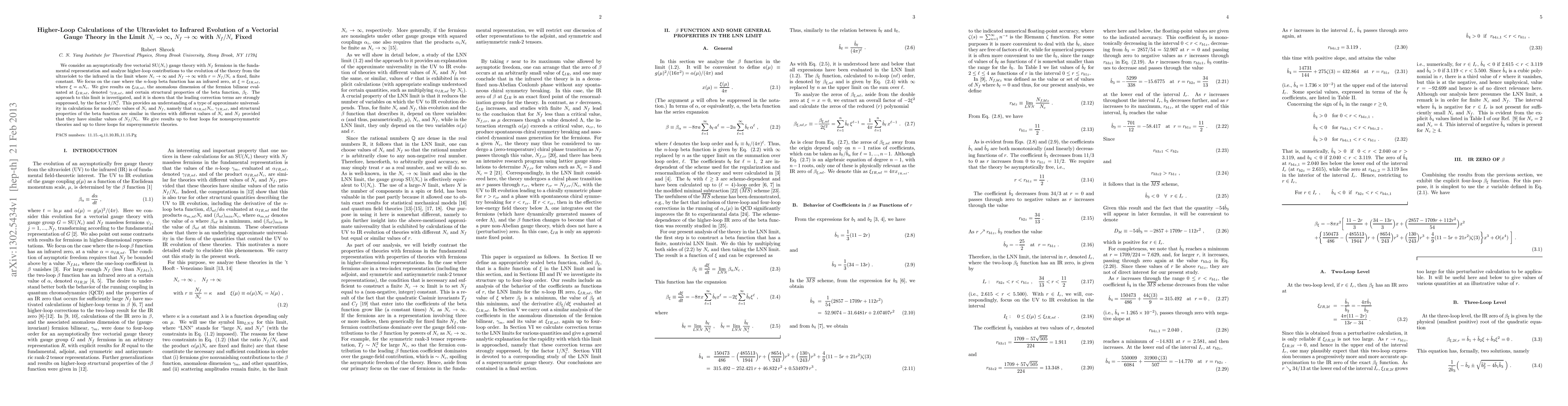 We consider an asymptotically free vectorial SU($N_c$) gauge theory with $N_f$ fermions in the fundamental representation and analyze higher-loop contributions to the evolution of the theory from the ultraviolet to the infrared in the limit where $N_c \to \infty$ and $N_f \to \infty$ with $r=N_f/N_c$ a fixed, finite constant. We focus on the case where the $n$-loop beta function has an infrared zero, at $\xi=\xi_{IR,n\ell}$, where $\xi=\alpha N_c$. We give results on $\xi_{IR,n\ell}$, the anomalous dimension of the fermion bilinear evaluated at $\xi_{IR,n\ell}$, denoted $\gamma_{IR,n\ell}$, and certain structural properties of the beta function, $\beta_\xi$. The approach to this limit is investigated, and it is shown that the leading correction terms are strongly suppressed, by the factor $1/N_c^2$. This provides an understanding of a type of approximate universality in calculations for moderate values of $N_c$ and $N_f$, namely that $\alpha_{IR,n\ell}N_c$, $\gamma_{IR,n\ell}$, and structural properties of the beta function are similar in theories with different values of $N_c$ and $N_f$ provided that they have similar values of $N_f/N_c$. We give results up to four loops for nonsupersymmetric theories and up to three loops for supersymmetric theories.
