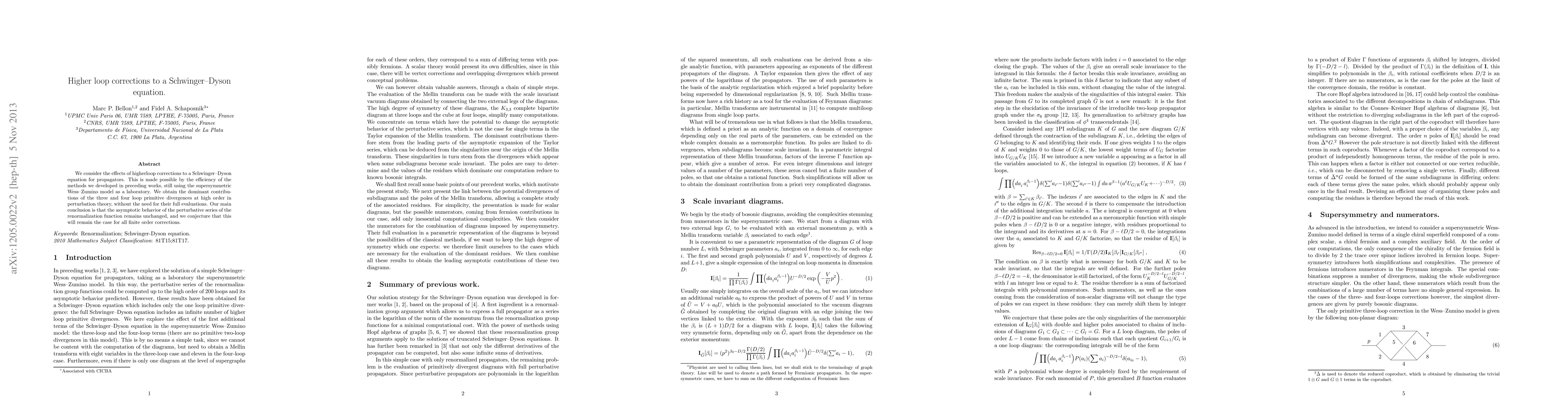 We consider the effects of higherloop corrections to a Schwinger--Dyson equations for propagators. This is made possible by the efficiency of the methods we developed in preceding works, still using the supersymmetric Wess--Zumino model as a laboratory. We obtain the dominant contributions of the three and four loop primitive divergences at high order in perturbation theory, without the need for their full evaluations. Our main conclusion is that the asymptotic behavior of the perturbative series of the renormalization function remains unchanged, and we conjecture that this will remain the case for all finite order corrections.