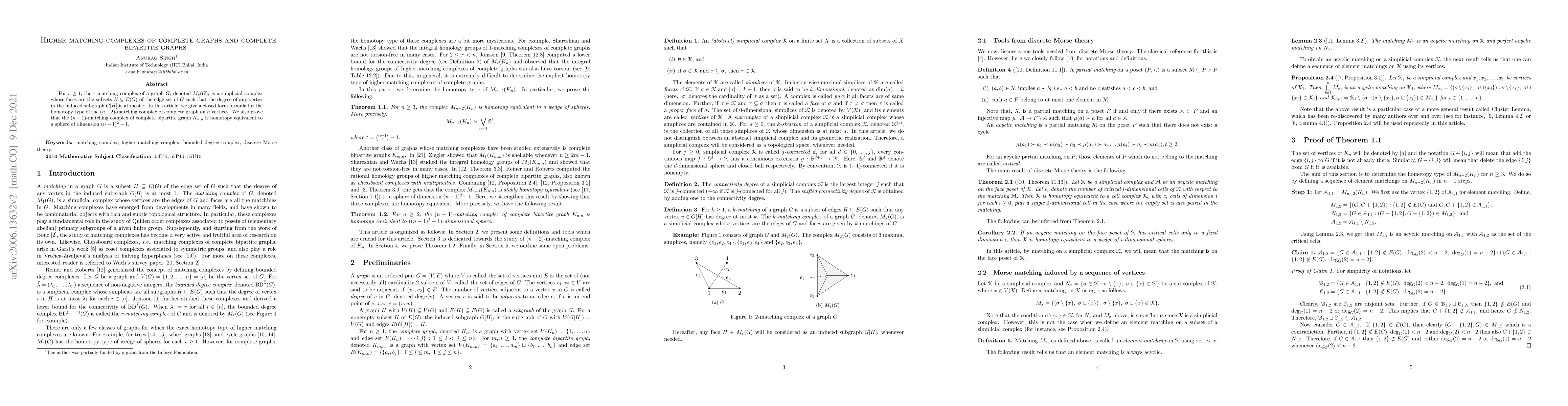 The paper presents a closed-form formula for the homotopy type of the (n-2)-matching complex of a complete graph with n vertices. It also proves that the (n-1)-matching complex of a complete bipartite graph K_n,n is homotopy equivalent to a sphere of dimension (n-1)^2-1.
