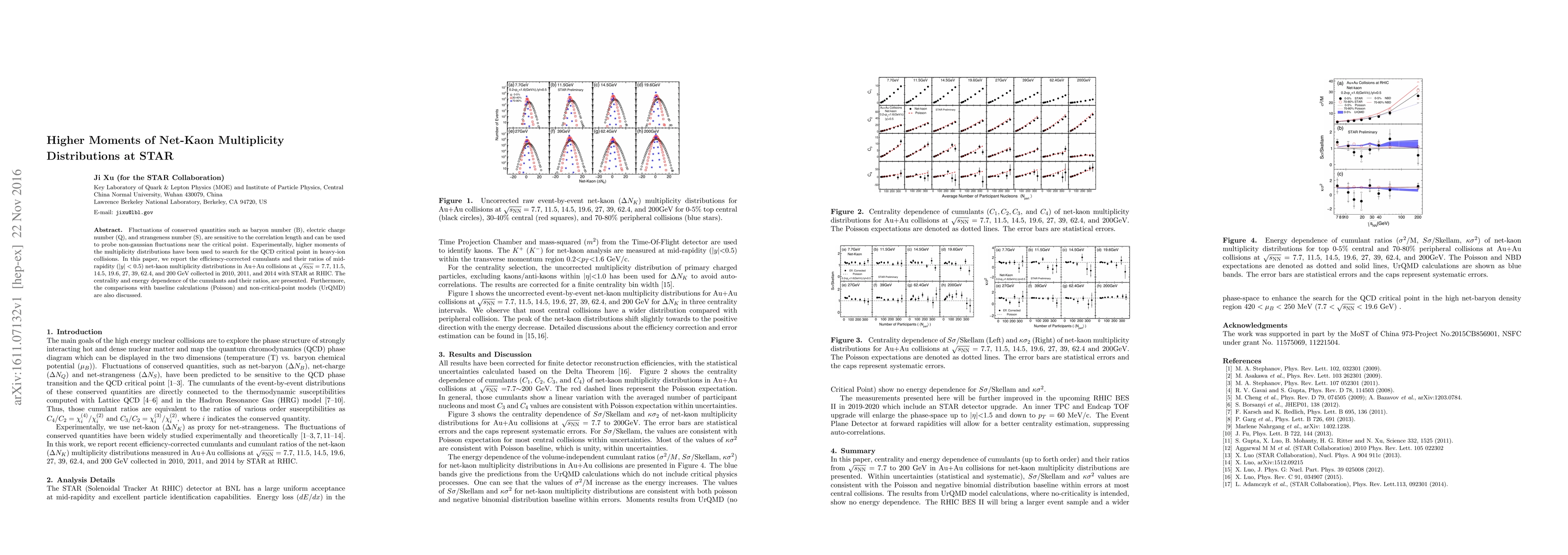 This paper reports efficiency-corrected cumulants and ratios of net-kaon multiplicity distributions in Au+Au collisions at various energies, aiming to probe non-Gaussian fluctuations near the QCD critical point. The study compares experimental results with Poisson and UrQMD models to analyze centrality and energy dependence.