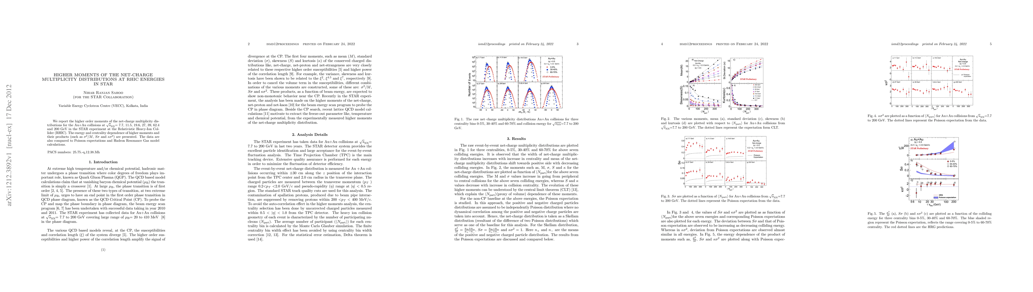 This paper reports on the higher-order moments of net-charge multiplicity distributions in Au+Au collisions at various RHIC energies in the STAR experiment. It examines the energy and centrality dependence of these moments and compares the results to Poisson and Hadron Resonance Gas model predictions.
