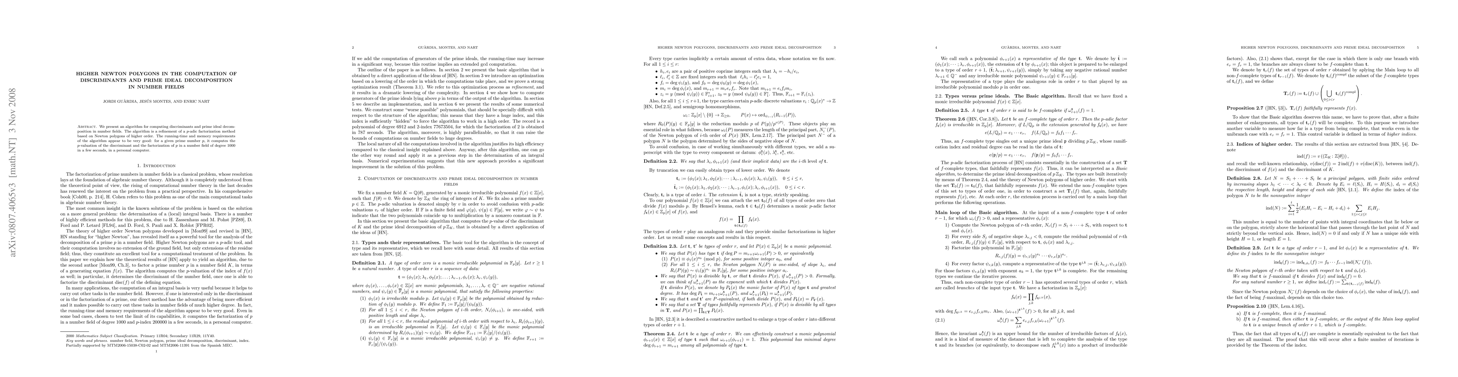 A new algorithm using higher Newton polygons improves computation of discriminants and prime ideal decomposition in number fields, achieving fast running times on a personal computer.