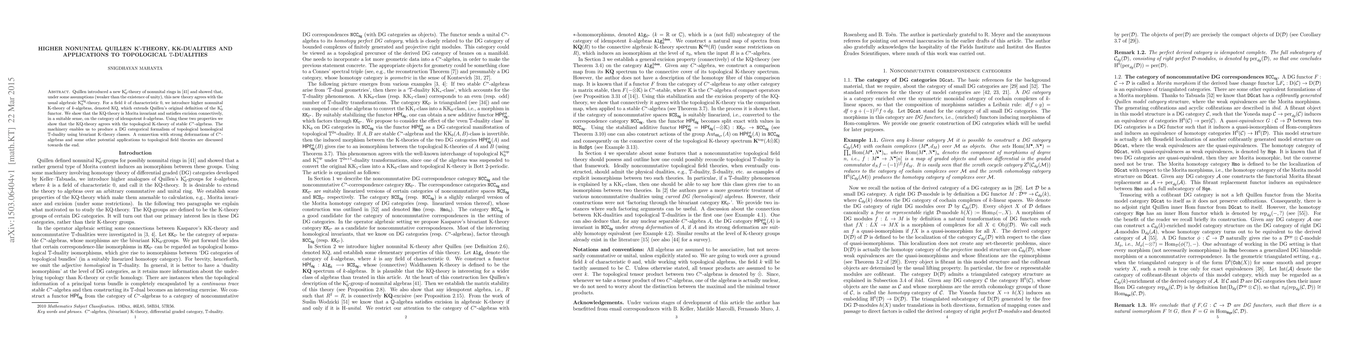 Quillen introduced a new $K'_0$-theory of nonunital rings and showed that, under some assumptions (weaker than the existence of unity), this new theory agrees with the usual algebraic $K^{alg}_0$-theory. For a field $k$ of characteristic $0$, we introduce higher nonunital $K$-theory of $k$-algebras, denoted $KQ$, which extends Quillen's original definition of the $K'_0$ functor. We show that the $KQ$-theory is Morita invariant and satisfies excision connectively, in a suitable sense, on the category of idempotent $k$-algebras. Using these two properties we show that the $KQ$-theory agrees with the topological $K$-theory of stable $C^*$-algebras. The machinery enables us to produce a DG categorical formalism of topological homological $\mathbb{T}$-duality using bivariant $K$-theory classes. A connection with strong deformations of $C^*$-algebras and some other potential applications to topological field theories are discussed towards the end.