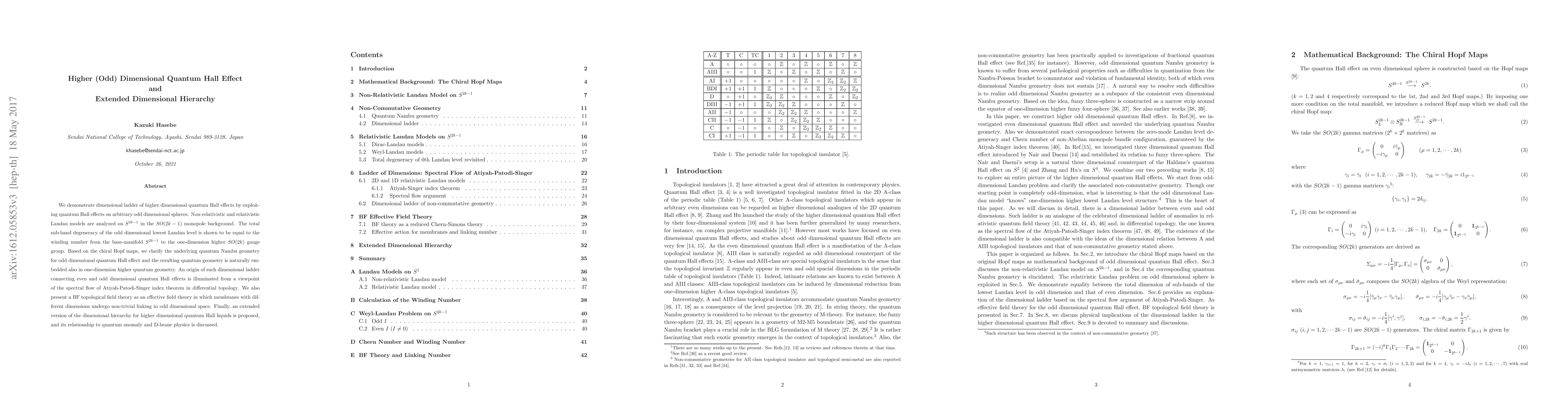 We demonstrate dimensional ladder of higher dimensional quantum Hall effects by exploiting quantum Hall effects on arbitrary odd dimensional spheres. Non-relativistic and relativistic Landau models are analyzed on $S^{2k-1}$ in the $SO(2k-1)$ monopole background. The total sub-band degeneracy of the odd dimensional lowest Landau level is shown to be equal to the winding number from the base-manifold $S^{2k-1}$ to the one-dimension higher $SO(2k)$ gauge group. Based on the chiral Hopf maps, we clarify the underlying quantum Nambu geometry for odd dimensional quantum Hall effect and the resulting quantum geometry is naturally embedded also in one-dimension higher quantum geometry. An origin of such dimensional ladder connecting even and odd dimensional quantum Hall effects is illuminated from a viewpoint of the spectral flow of Atiyah-Patodi-Singer index theorem in differential topology. We also present a BF topological field theory as an effective field theory in which membranes with different dimensions undergo non-trivial linking in odd dimensional space. Finally, an extended version of the dimensional hierarchy for higher dimensional quantum Hall liquids is proposed, and its relationship to quantum anomaly and D-brane physics is discussed.