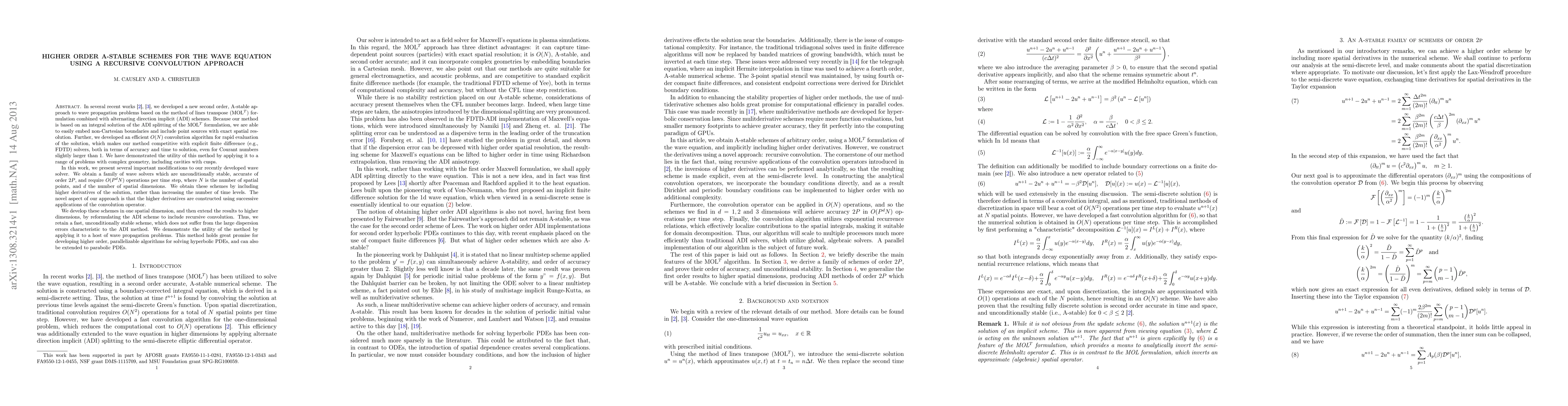 This paper develops higher order, unconditionally stable wave solvers for hyperbolic PDEs using a recursive convolution approach. The schemes achieve order 2P accuracy and require $O(P^d N)$ operations per time step, where P is the order and N is the number of spatial points.
