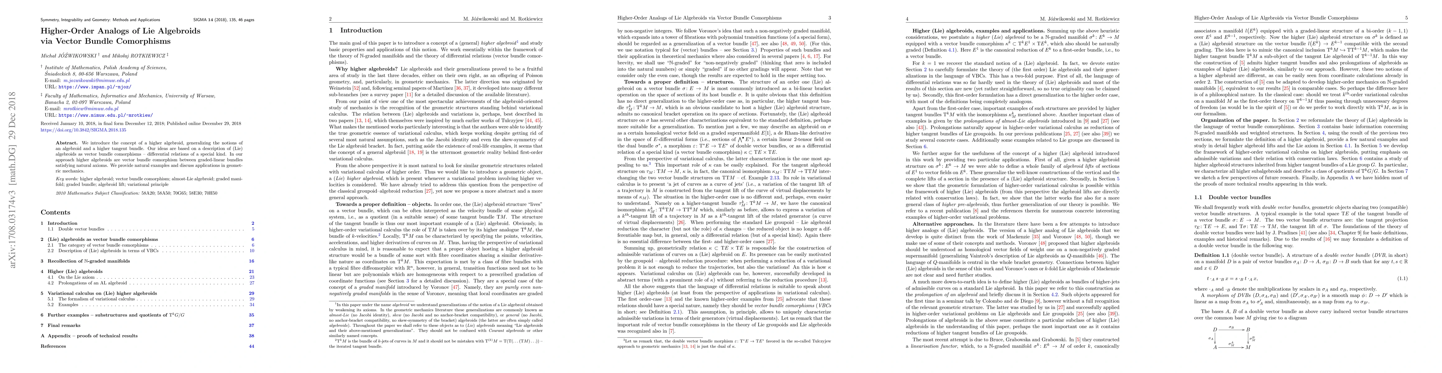 The paper introduces higher algebroids, a generalization of Lie algebroids and higher tangent bundles, constructed via vector bundle comorphisms. These higher algebroids satisfy specific axioms and have applications in geometric mechanics.
