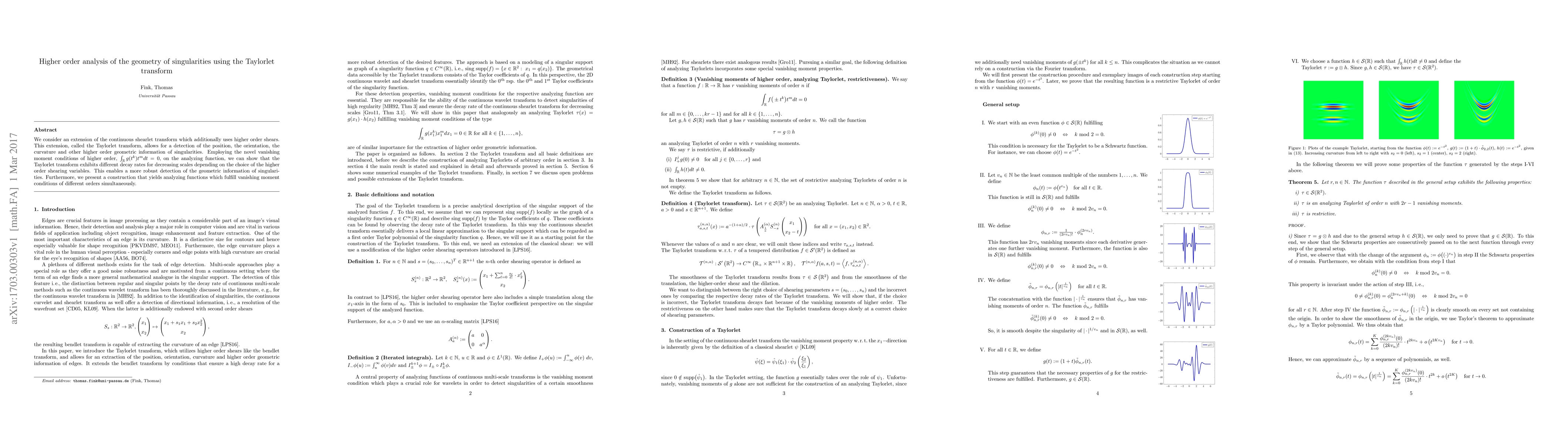 We consider an extension of the continuous shearlet transform which additionally uses higher order shears. This extension, called the Taylorlet transform, allows for a detection of the position, the orientation, the curvature and other higher order geometric information of singularities. Employing the novel vanishing moment conditions of higher order, $\int_\mathbb{R} g(t^k)t^m dt=0$, on the analyzing function, we can show that the Taylorlet transform exhibits different decay rates for decreasing scales depending on the choice of the higher order shearing variables. This enables a more robust detection of the geometric information of singularities. Furthermore, we present a construction that yields analyzing functions which fulfill vanishing moment conditions of different orders simultaneously.