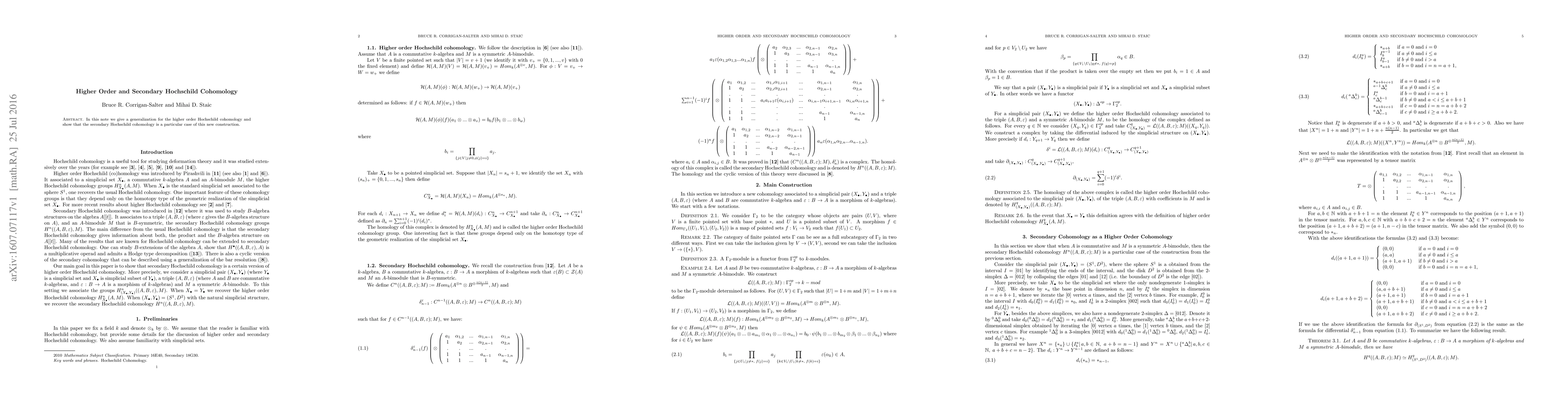 This paper generalizes higher order Hochschild cohomology and demonstrates that secondary Hochschild cohomology is a specific instance of the new construction. The work provides a broader framework for understanding these cohomology theories.