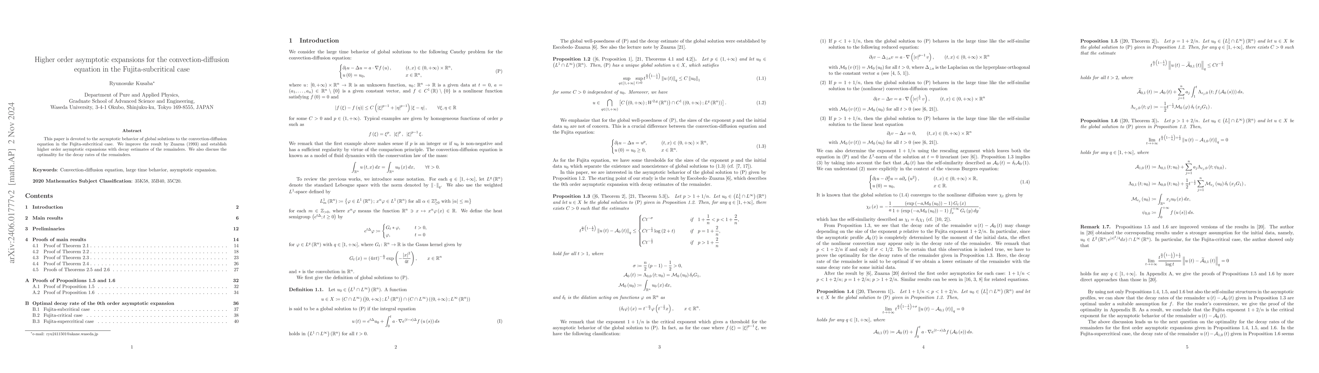 This paper presents higher order asymptotic expansions for global solutions to the Fujita-subcritical convection-diffusion equation, improving previous results and providing decay estimates for remainders, while also discussing the optimality of the decay rate.
